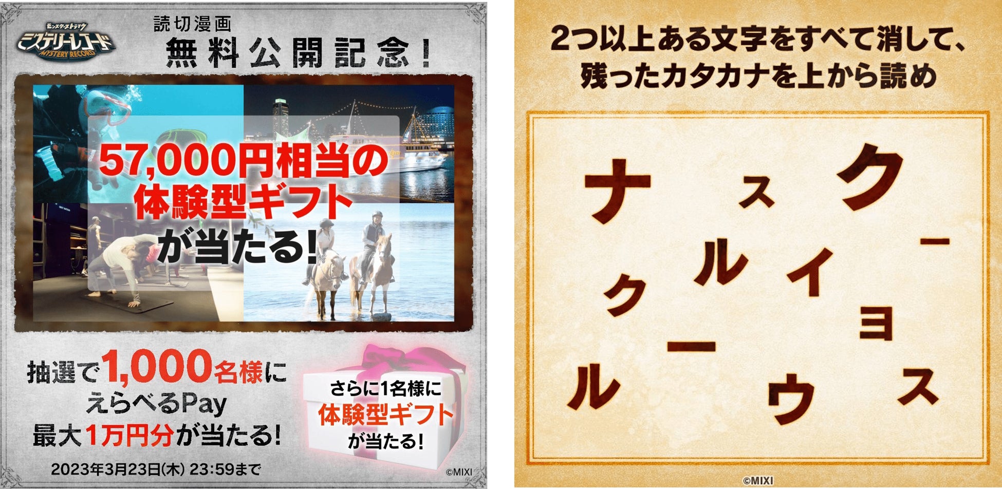 株式会社MIXI(東京都渋谷区、代表取締役社長:木村 弘毅)が展開するモンストシリーズ最新作となるスマホアプリの協力謎解きアドベンチャー「ミステリーレコード」(以下ミリコド)は、麻生羽呂原作の特別読切漫画をサンデーうぇぶりにて本日3月17日(金)より無料公開します。