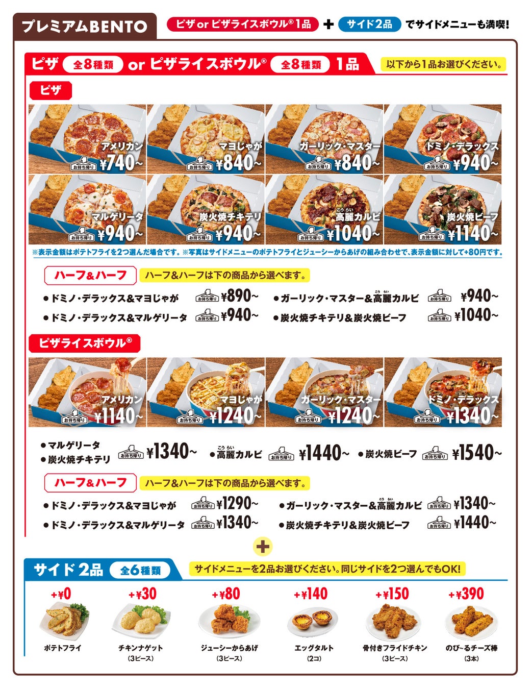 「ピザBENTO」は、お好きなメインとサイドメニューを組み合わせて自分好みの“お弁当”を作ることができる新商品です。その日の気分やお腹のすき具合に合わせて選択できるよう、メイン1品とサイドメニュー1品が選べる「バリューBENTO」と、メイン1品とサイドメニュー2品が選べる「プレミアムBENTO」の2カテゴリーをご用意しています。