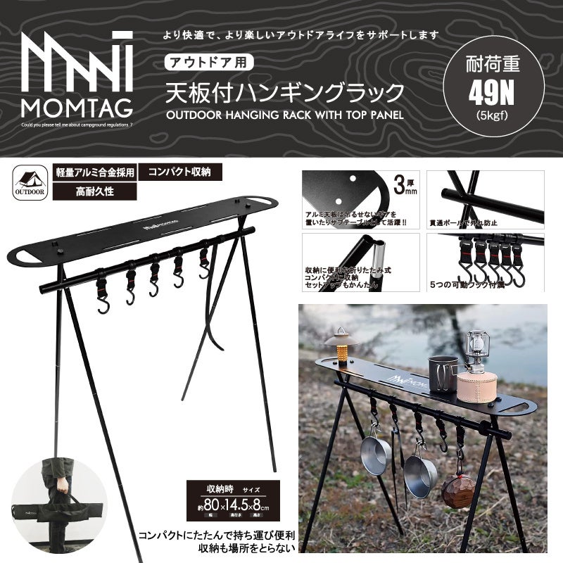 アウトドアブランド【MOMTAG】アウトドア用天板付ハンギングラック HDL-0517