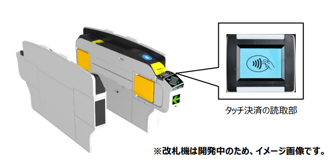 本サービスは、お客様がお持ちのタッチ決済対応のカードやタッチ決済対応のカードが設定されたスマートフォン等を、改札口に新たに設置する専用リーダーにタッチすることでご利用いただけるものです。
