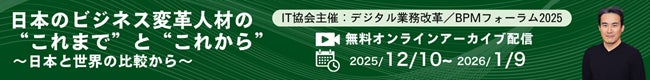 ■第20回デジタル業務改革/BPMフォーラム2025 (公益社団法人企業情報化協会=IT協会主催。1月9日までオンライン配信、無料)https://jiit.or.jp/lp/bpm/page/DGKBPM/