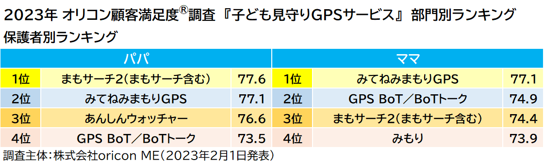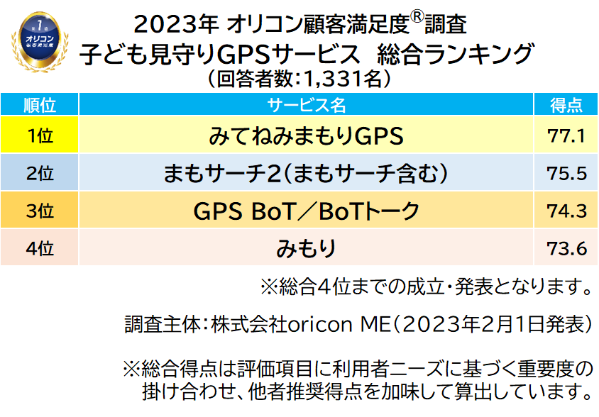 《新規調査》 実際に利用する保護者1,331名が評価した 『子ども見守りGPSサービス』 ランキング(2023年 オリコン顧客満足度®調査)