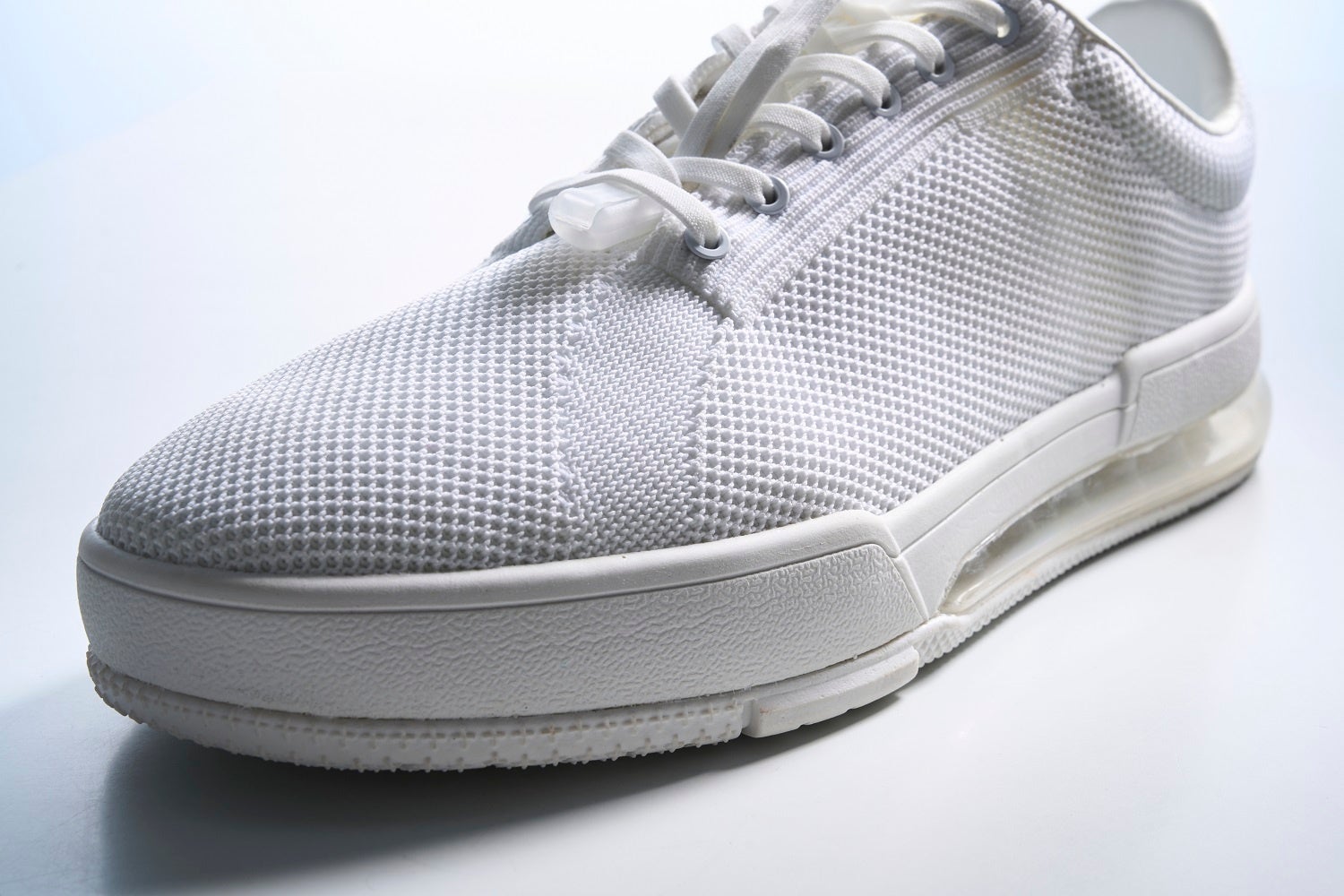 靴紐には結ぶ必要のない留め具を使用し、ほどける心配なし。アッパー全体のニット素材のおかげで伸縮性が高いので、靴を履く時に緩ませる必要もありません。