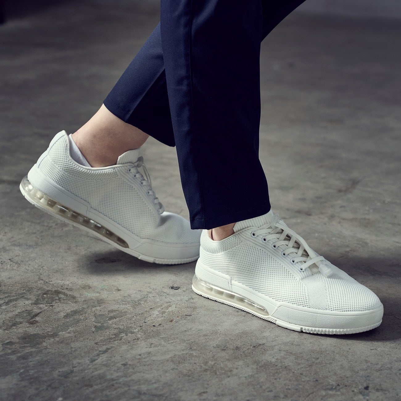 WORKWEAR SHOESの第2弾として「白スニーカーは雨の日に履くのを躊躇してしまう」というお客様の声から、ビジネスシーンでもカジュアルでも着用でき、簡単に洗えて清潔感のある白さが続くスニーカーを開発。現在累計売上1700万円を突破しています。