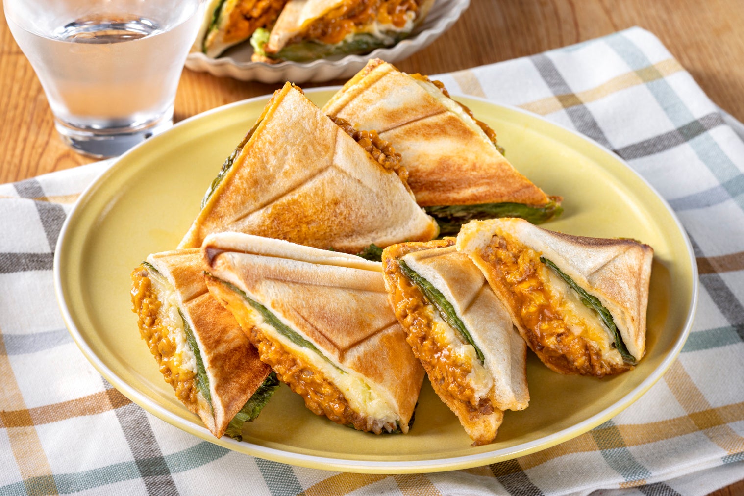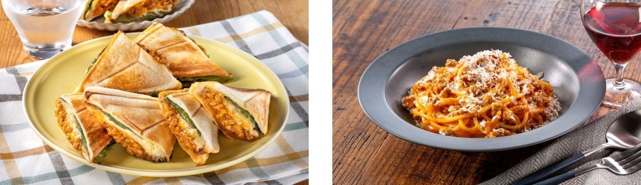 *画像左から、<ボロネーゼハヤシで作るホットサンド>、<ボロネーゼハヤシで作るパスタ>