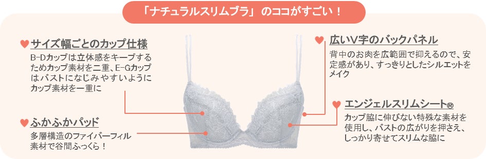 - ボディの造形美を、流麗なラインのチュールネットで表現。注目フィット「ナチュラルスリムブラ」も登場!