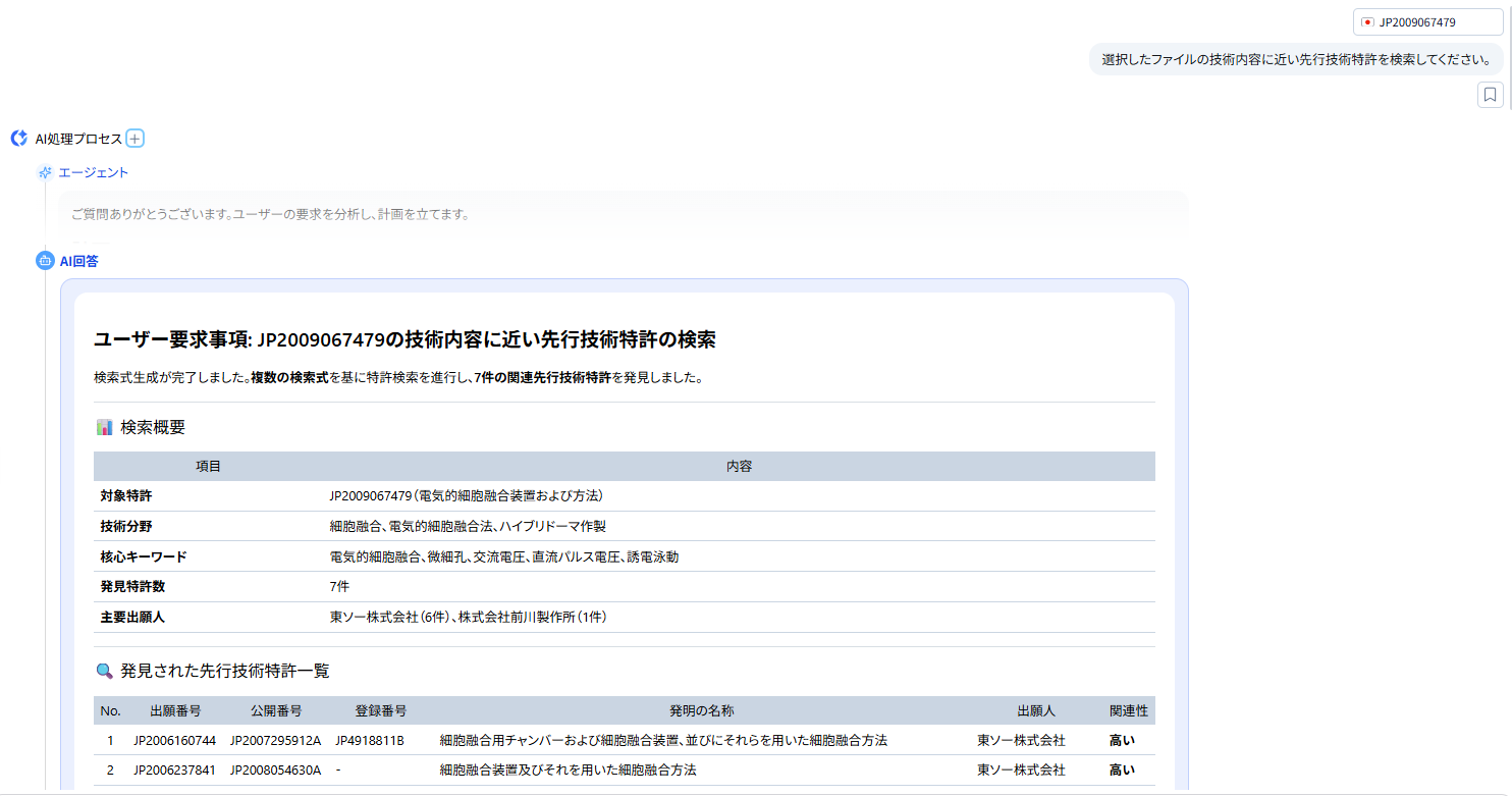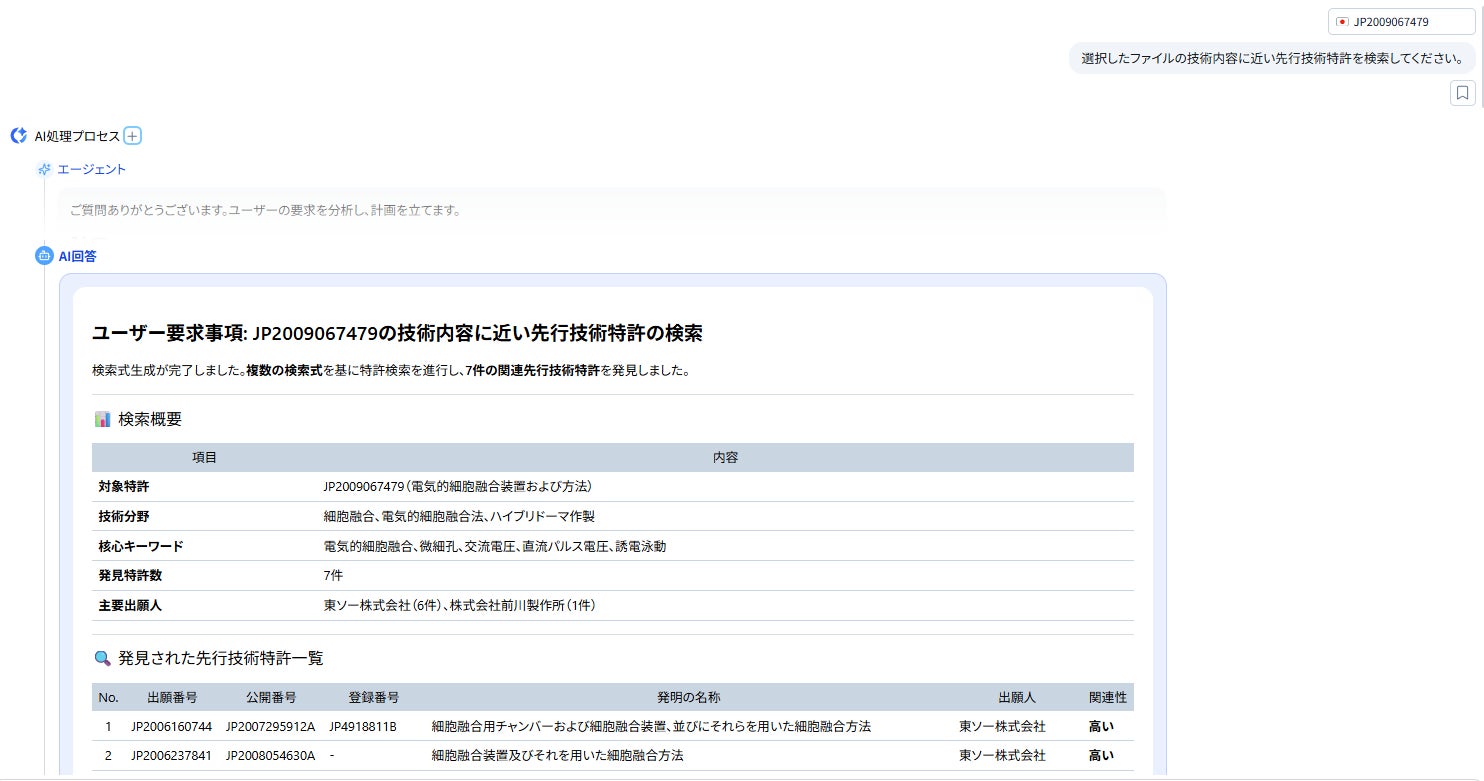 ■ 「これと似た技術を探して」だけで調査レポートまで完成!AIの処理プロセスや思考過程も公開