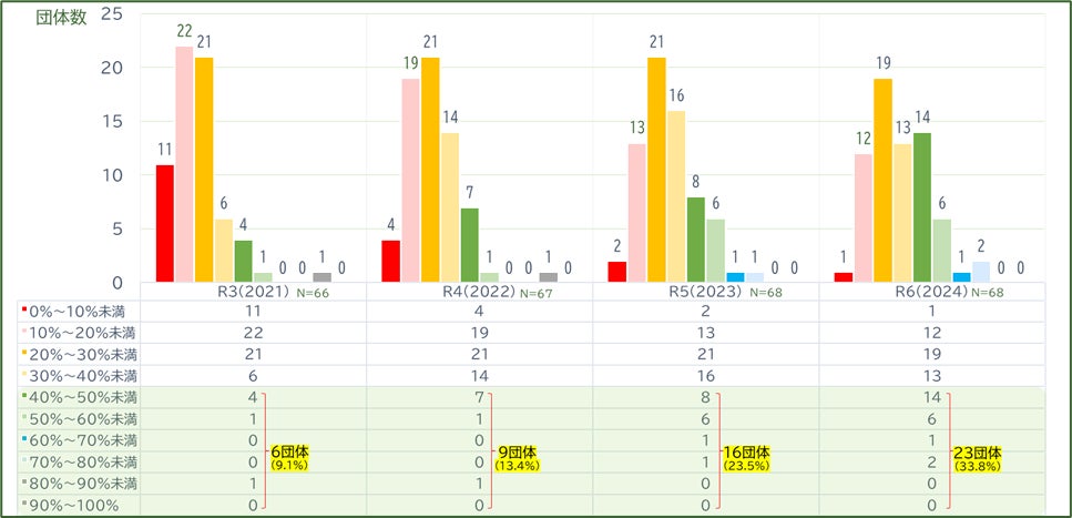 全体では126団体中30団体 (前年:22団体) → 8団体増加