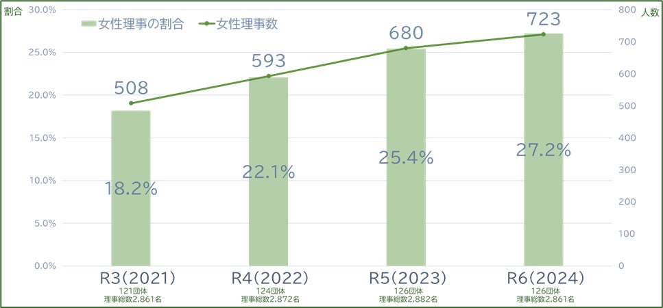 ・理事2,861名 (前年:2,882名) のうち女性理事は723名 (前年:680名)→ 43名増加