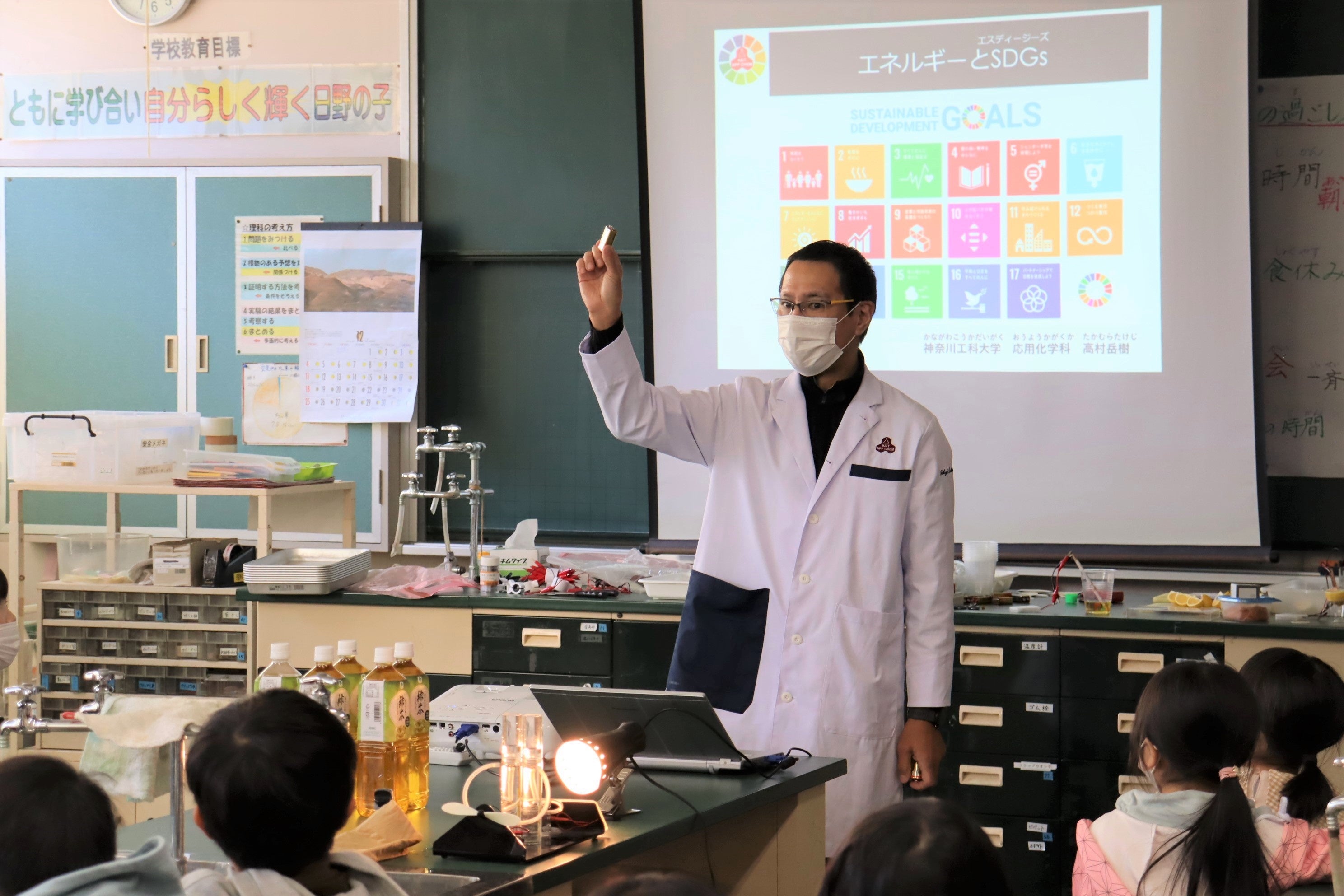 「SDGs×理科実験教室」は、実験を通して児童たちに科学の面白さを感じてもらうとともに、次世代を担う児童たちが楽しみながらSDGsを体験してもらうことを目的に始めました。神奈川工科大学工学部応用化学科の髙村教授に講師を務めていただき、小学生の児童が楽しめるように工夫を凝らした理科実験を実施します。
