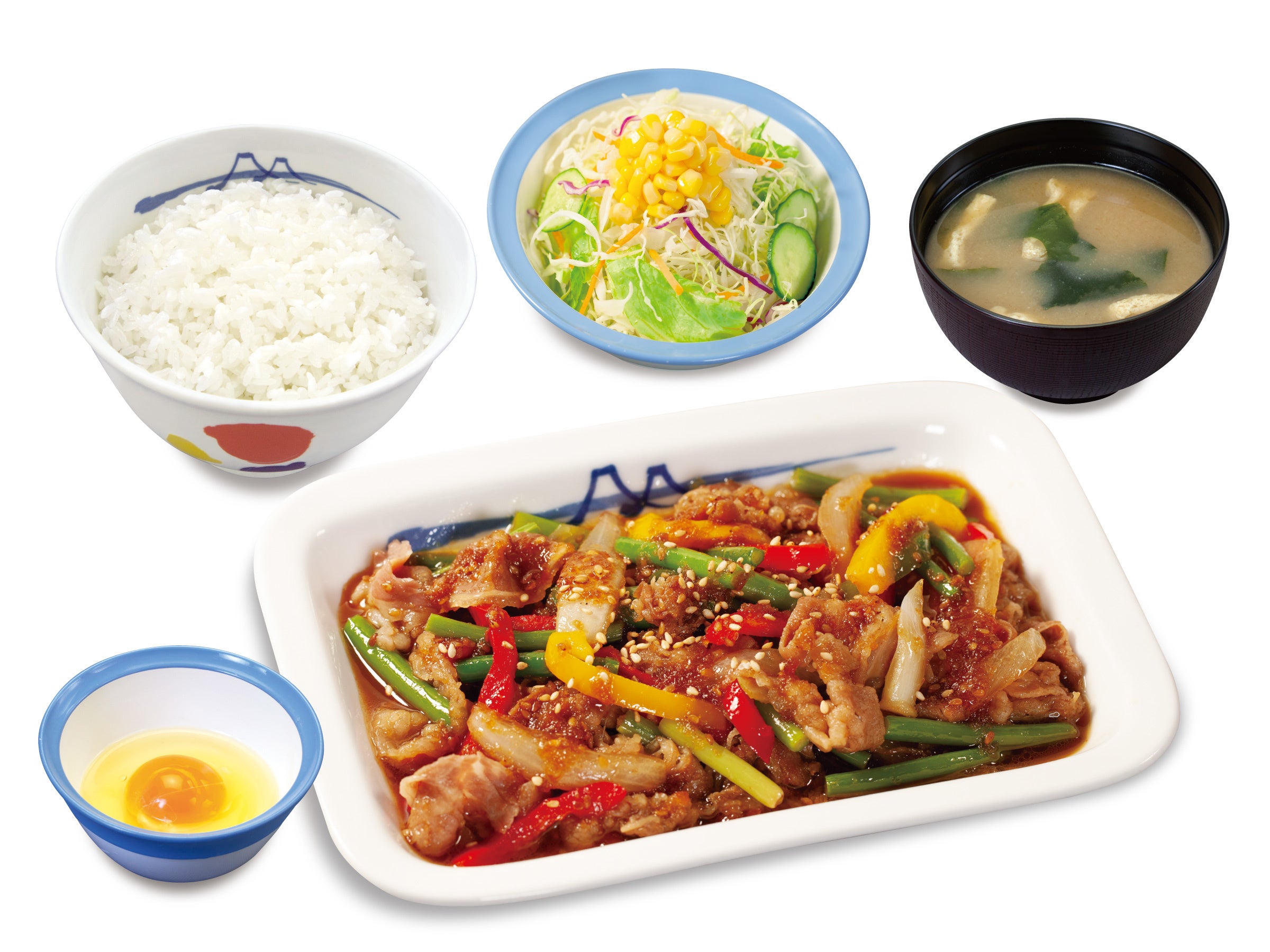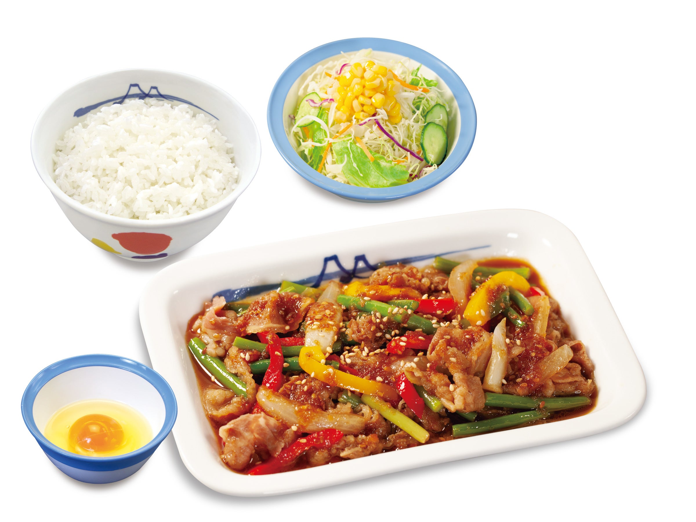 | 商品名 プルコギライスセット(ライス・みそ汁・選べる小鉢 付) 720円/(W)1,120円 プルコギ定食(ライス・みそ汁・選べる小鉢 付) 780円/(W)1,180円 ※選べる小鉢(生玉子orキムチ) ※お持ち帰りいただけます。お持ち帰りにみそ汁は付きません。 お持ち帰りの場合、みそ汁は別途60円でお求めいただけます。 ※全て税込み価格です。また、店内・お持ち帰りの税込価格は同一です。 発売日 2022年8月30日(火)午前10時 ~ 対象店舗 一部店舗を除く全国の松屋 |