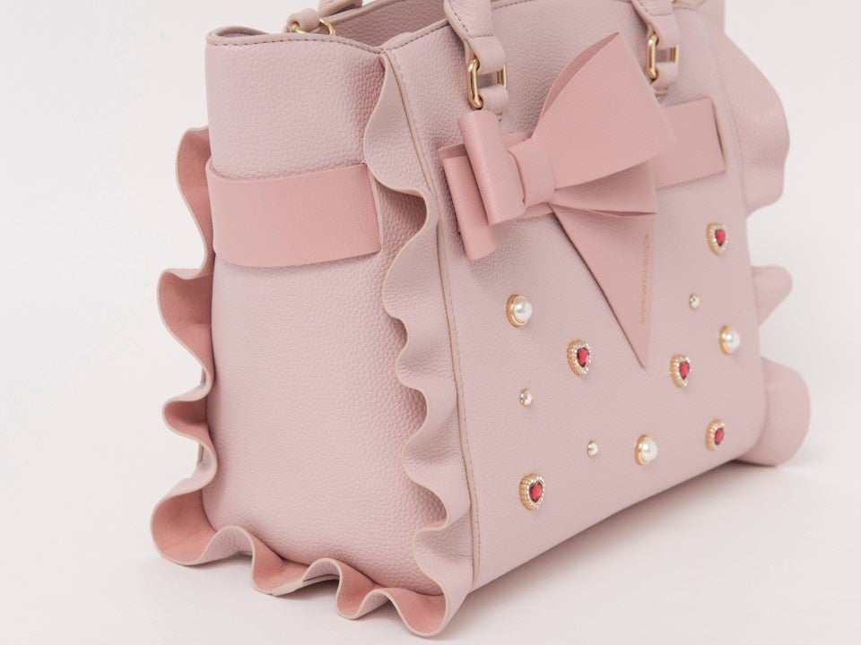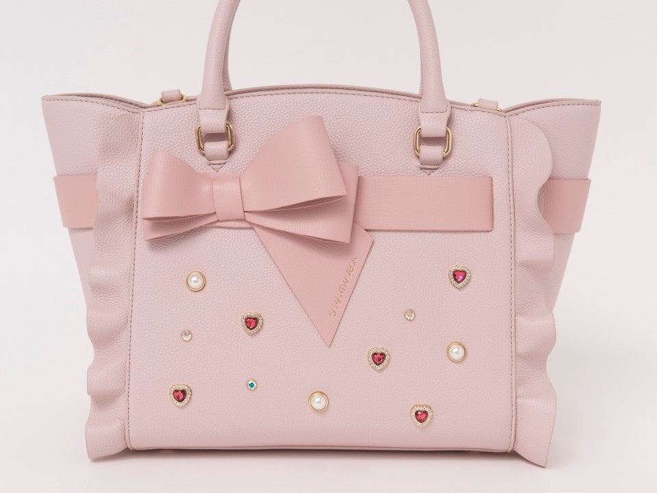 大ぶりなリボンに加え、パール、ビジュー、ハートビジューが散りばめられており、