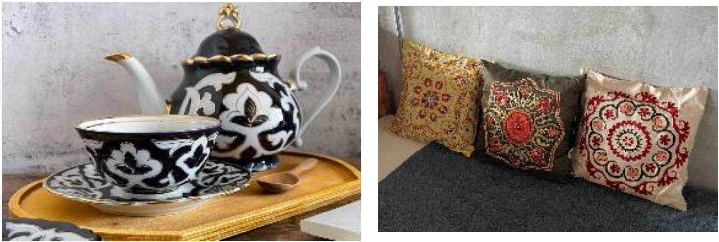 ※ウズベキスタンの美しい陶器の食器や雑貨、インテリア、綿花(パフタ)柄の食器