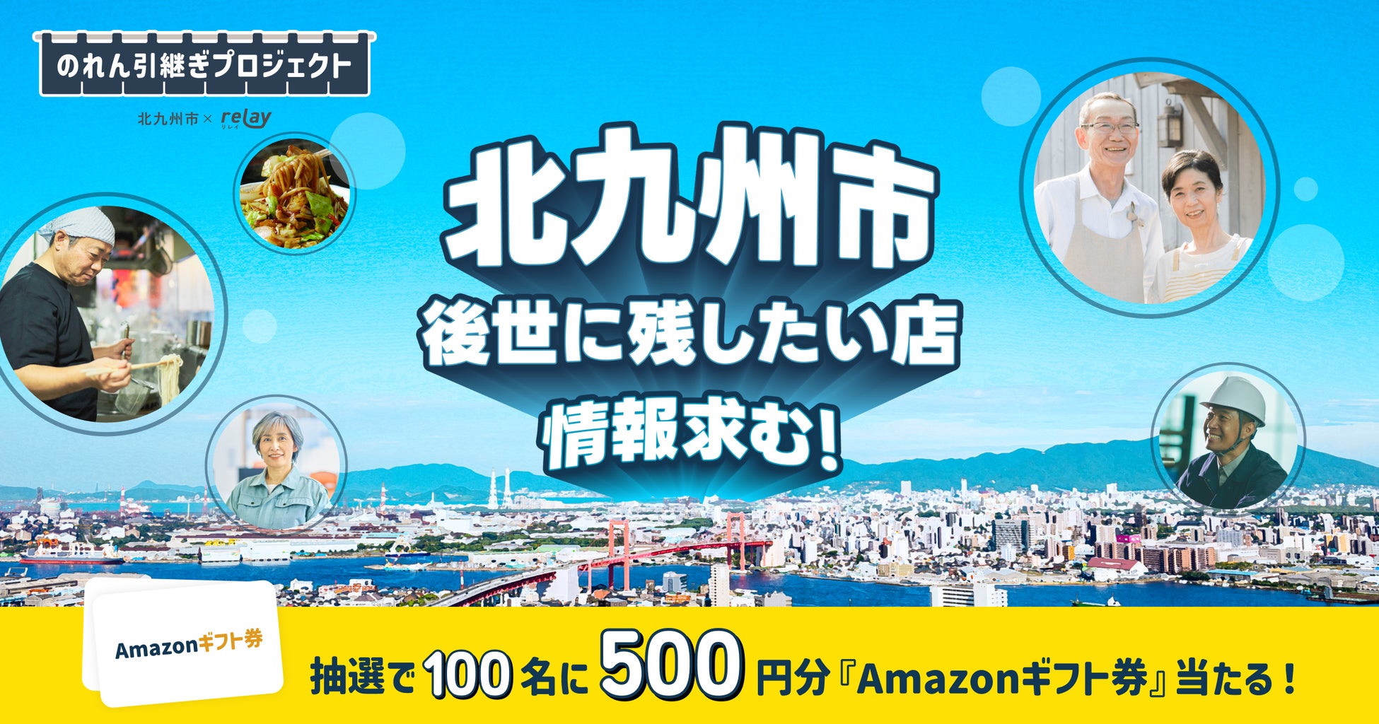 本プロジェクトでは北九州市内で愛され、育まれてきた「後世に残したいお店・味・ものづくり」をSNS・フォーム投稿で募り、応募期間内に投稿いただいた中から抽選で100名様に500円分のAmazonギフト券が当たる「後世に残したいお店」投稿キャンペーン企画を実施いたします。