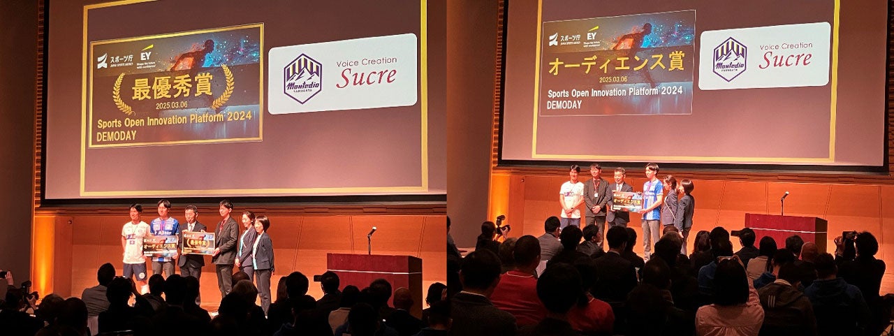 この度、モンテディオ山形では、3月6日(木)、スポーツ庁が運営するプログラム SOIP(スポーツ界と他産業界が連携することで新たなサービスが創出される社会の実現を目指すスポーツ政策)において『Sports Open Innovation Platform(SOIP)2024』の成果を発表するDEMODAYに参加し、本プログラムにおいて史上初めて、最優秀賞およびオーディエンス賞の二冠を受賞いたしましたのでお知らせいたします。