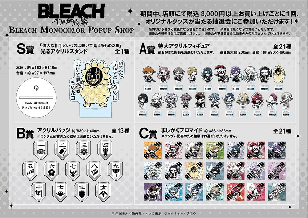 今回のイベントでは、BLEACH MONOCOLORの新作グッズを販売いたします。
