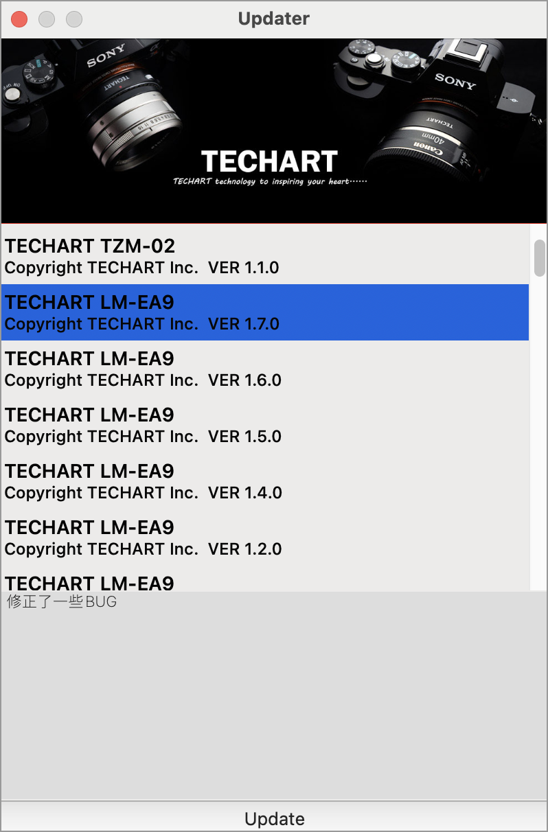 TECHART LM-EA9 ファームウェアアップデート: Ver.1.7.0 (公開停止中)