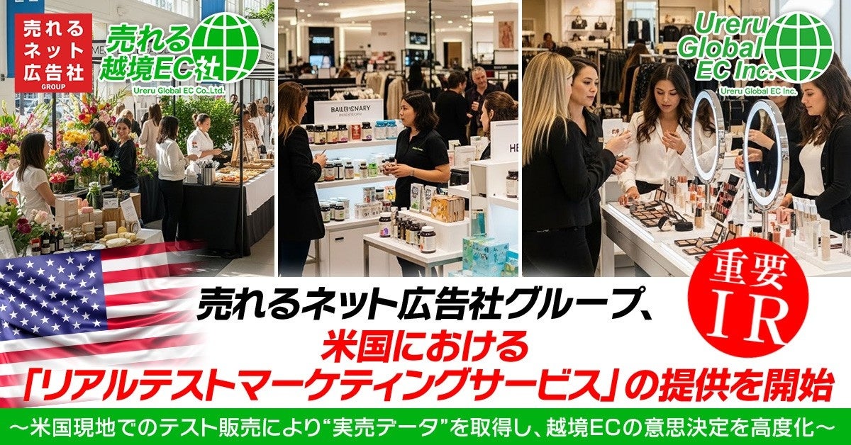 売れるネット広告社グループ、米国における「リアルテストマーケティングサービス」の提供を開始~米国現地でのテスト販売により“実売データ”を取得し、越境ECの意思決定を高度化~