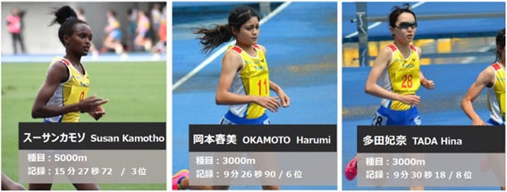 また、女子5000m に出場のスーサン・カモソ選手が3 位、女子3000m 出場の岡本春美選手、多田妃奈選手がそれぞれ6 位、8 位入賞と健闘いたしました。