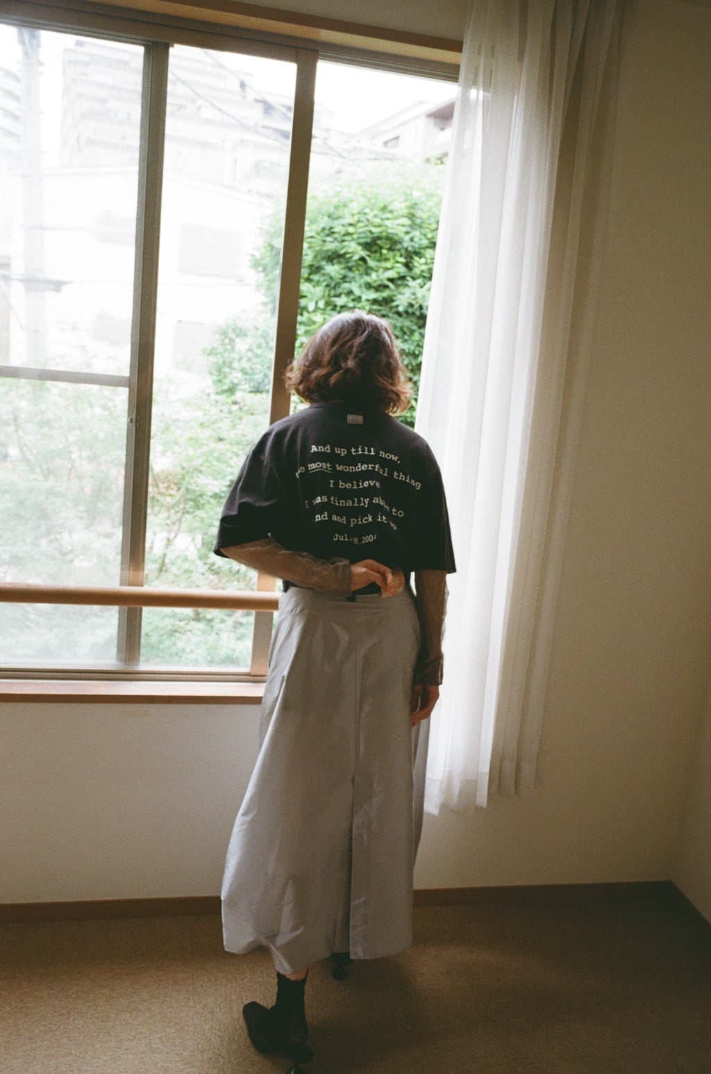 今回販売するのは、槇原敬之さんがプライベートでも愛用するファッションブランド「TANGTANG」が、楽曲「どんなときも。」「もう恋なんてしない」「遠く遠く」など6曲の歌詞をタイポグラフィでデザインした全6型のTシャツです。Tシャツのタグ部分には、槇原敬之さんの名前が印字される特別仕様になります。俳優の臼田あさ美さんをモデルに起用したルックは、ファッションブランド「kudos」や「soduk」のデザイナー、またフォトグラファーとしても活動する工藤司氏が撮影しました。