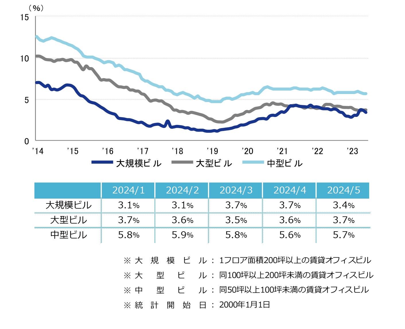 三幸エステート株式会社(本社:東京都中央区、取締役社長:武井重夫)は、2024年5月度の大阪市オフィス賃貸状況(空室率&現空面積:大規模、募集賃料&募集面積:大規模、規模別空室率、主要3区※1空室率:大規模)および全国6大都市(東京・札幌・仙台・名古屋・大阪・福岡)の大規模ビルのマーケットデータをまとめた「オフィスマーケット2024年6月号大阪」を公表します。