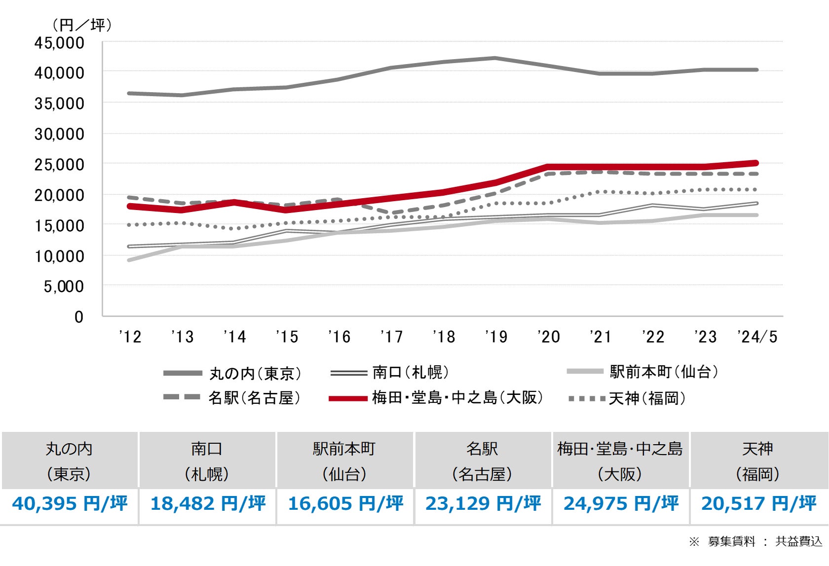 <募集賃料の推移(6大都市 大規模ビル・主要駅前地区)>