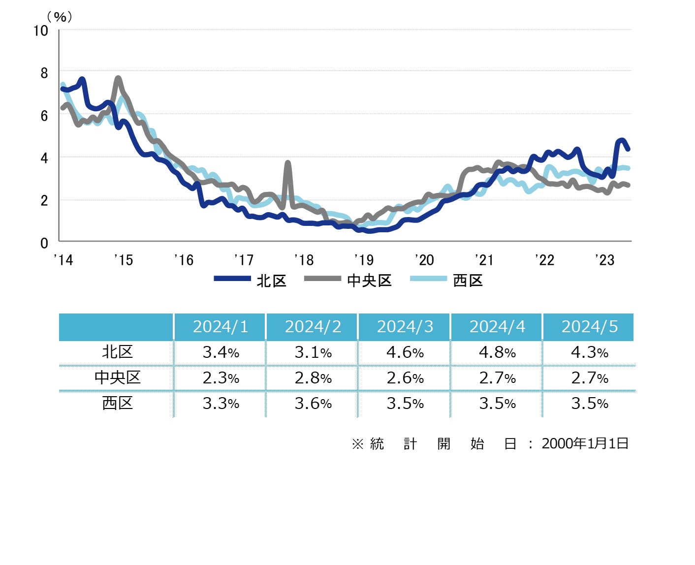 空室率 前月から低下 「北区」が0.5ポイントの大幅な低下