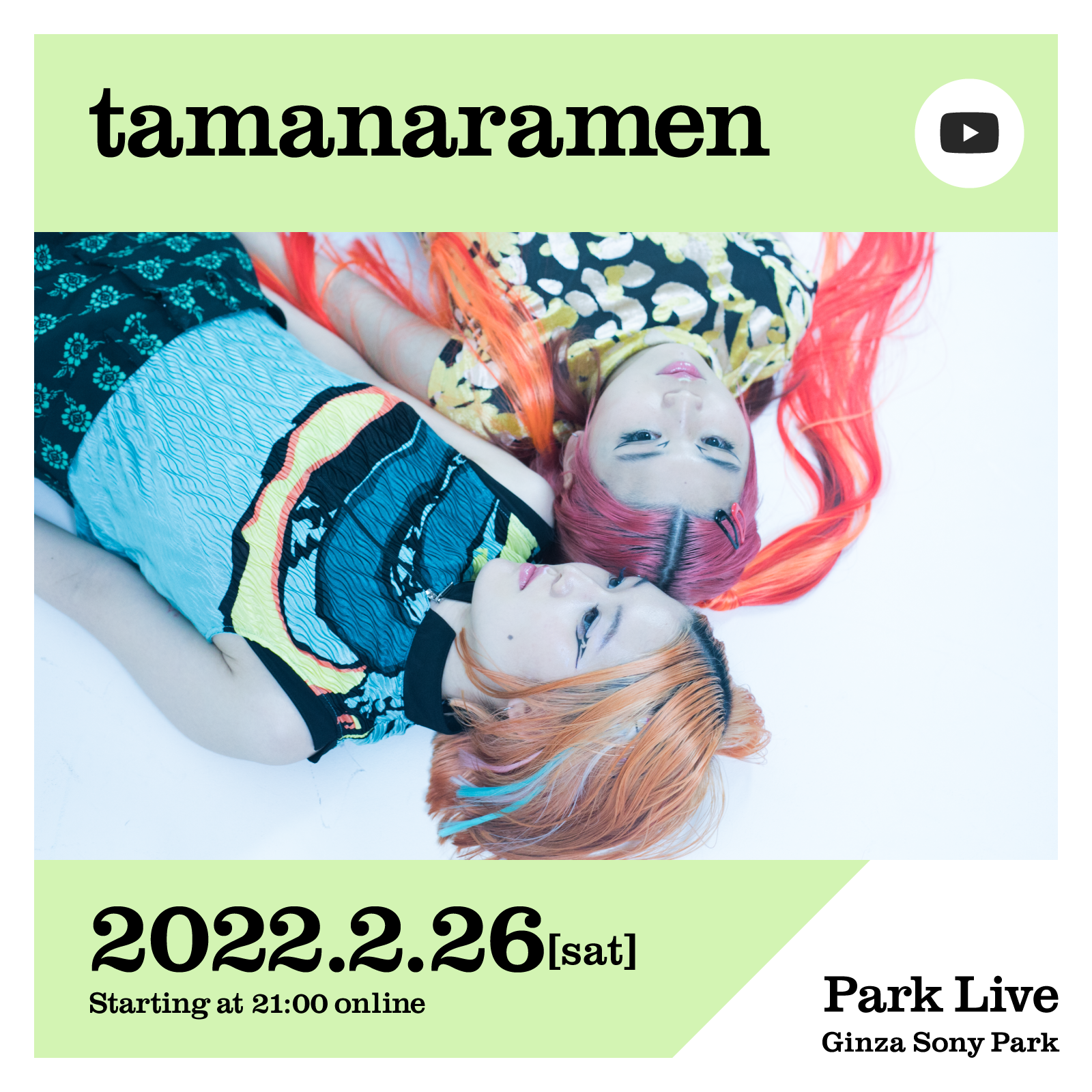 再始動後3回目となる今回のPark Liveでは、アブストラクトな音像と詩的で繊細なボーカルで独自の世界観を作り出す、実の姉妹による注目のアーティストユニットtamanaramen(玉名ラーメン)が出演。UKの名門レーベル〈XL Recordings〉のプレイリスト「XL Play」にもピックアップされ話題を呼んだ2人のライブを、2022年2月26日(土)21:00から、YouTube Liveで生配信します。