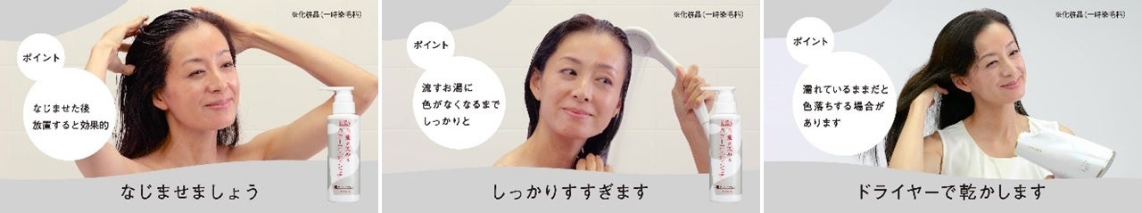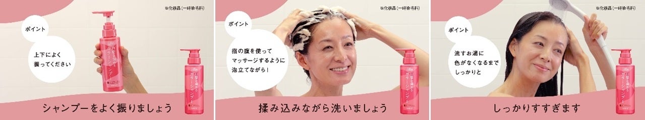 ※すすぎやヘアドライが十分でないと、枕カバーや衣類に付着することがあります。付着したらすぐに洗濯してください。(素材によっては落ちにくい場合があります。)