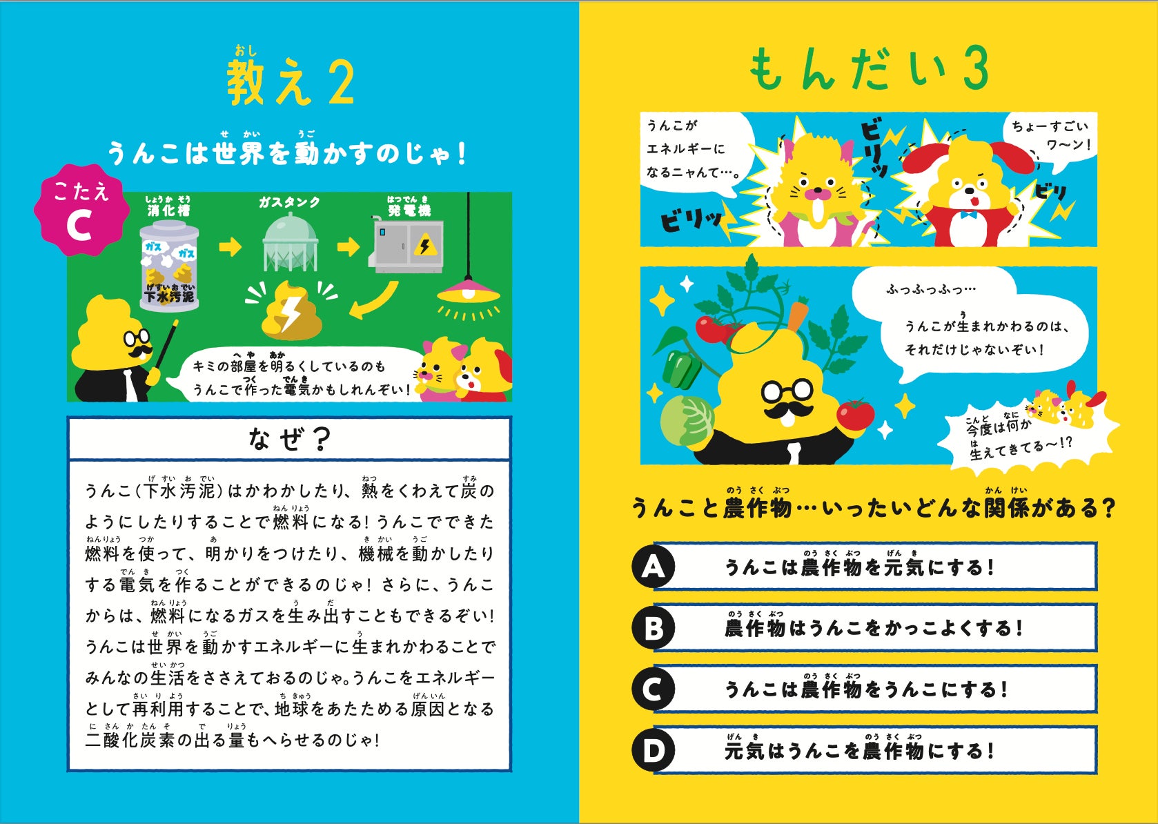 トイレに流したうんこの行方を学ぶ!?累計1,000万部を突破したうんこドリルシリーズと月島JFEアクアソリューションがコラボして制作した冊子「うんこドリル うんこのリサイクル」。