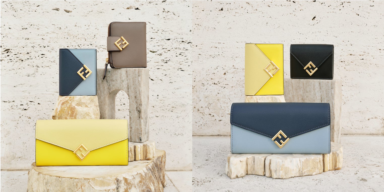 次におすすめしたいのは、2023年春夏シーズンに登場以来、フェンディの新定番となったスモールレザーグッズ「FF ダイヤモンド(FF DIAMOND)」コレクションです。2024年春夏コレクションのカラーパレットより、ビタミンイエローとパステルライトブルーの新色が登場し、華やかにアップデートされました。ダイアゴナルに施されたアイコニックな「FF」ロゴのクロージャーと鮮やかなカラーブロッキングというデザイン性に加え、必要不可欠な機能をカバーするミニマムなスタイルが特徴です。小さいバッグにも収まるコンパクトな三つ折りウォレットには、6つのカードスロット、紙幣用コンパートメント、フラップ式のコインポケット備え、二つ折りウォレットには、6つのカードスロット、紙幣用コンパートメント、ラウンドジップ式のコイン用コンパートメント、バックポケットをそれぞれ1つずつ備えています。ロングウォレットはゆったりとした内部にマチ付きポケット2つ、ジップポケット1つ、さらにカードスロット10個に加え、複数のフラットサイドポケットを備えた機能性に優れたデザイン。ビタミンイエローのロングウォレットは日本限定で展開されます。