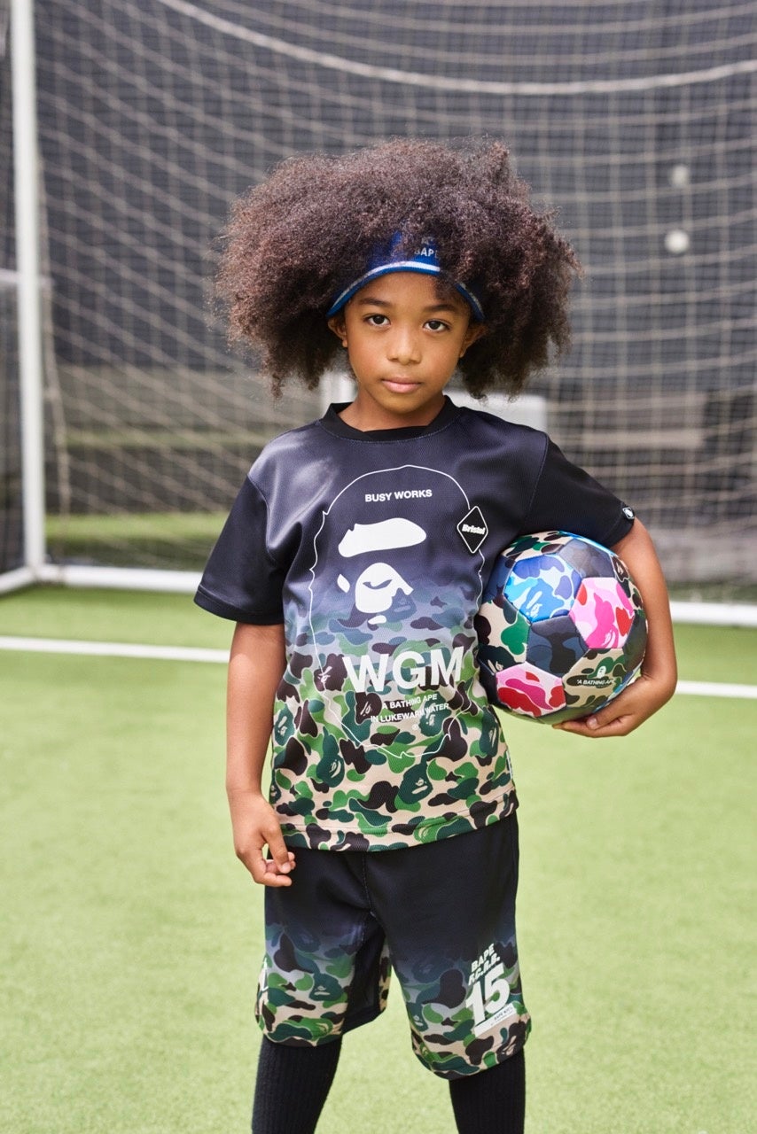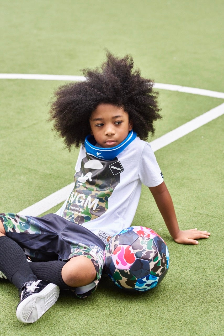 そのF.C.R.B.をパートナーに迎え、BAPE KIDS®︎の15周年を祝福する節目のコラボレーションでは、ピッチで存在感を放つプレイヤー仕様のゲームウェアをリリースします。