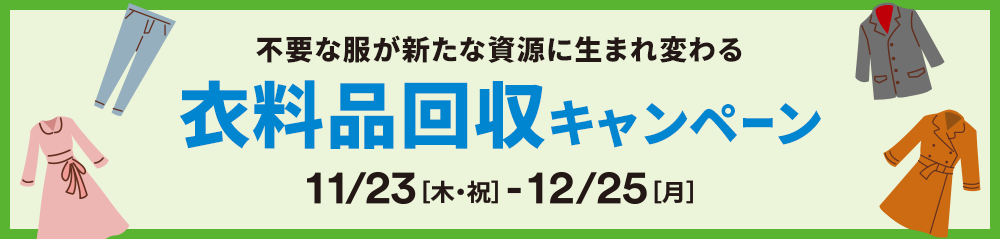 不要なコートやセーターなど冬物衣料のリサイクルに 11月23日(木・祝)~12月25日(月)実施