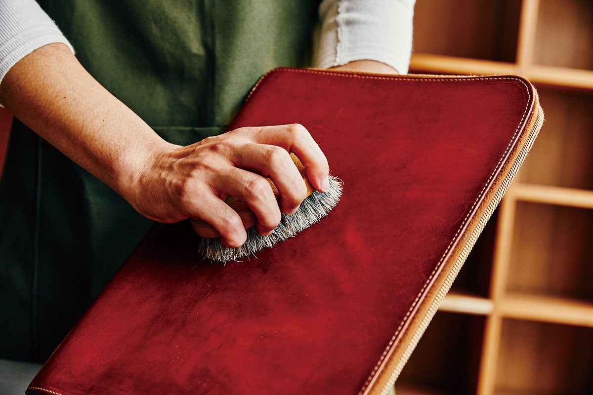 開催期間中、ブリティッシュメイド公式アプリに登録いただいたお客様には、「グレンロイヤル スタンダードケア」クーポンをプレゼント。バッグ、財布、カードケース、ステーショナリーなど、グレンロイヤル製品の汚れ落とし、ケアワックス塗布、ブラッシング、仕上げ(乾拭き)に加えて、コバ(レザーの裁断面)の補色などを行います。ご愛用品を安心して使い続けていただける「長く使う」ための、ブリティッシュメイド独自のサービスです。