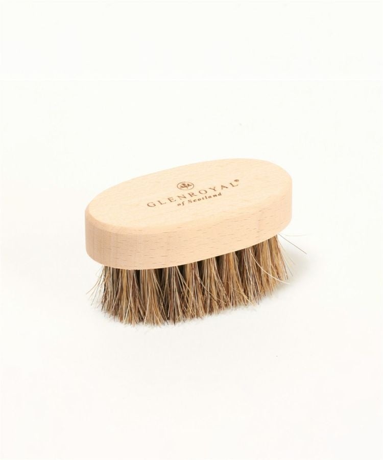 グレンロイヤルのお手入れ用ブラシ。ブラシの毛は、しなやかな馬毛を採用。ブラウンの馬毛と白馬の毛をブレンドした上品な色合いが特長。持ち手はナチュラルの木材を採用することで、レザーをお手入れした分だけ経年変化が楽しめます。