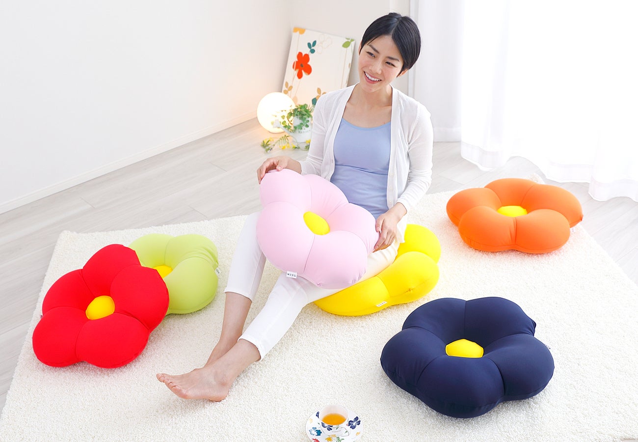 ポップで華やかな見た目と、むにゅむにゅとした気持ちいい感触が人気の花型のビーズクッションです。本物のお花と違い、見た目だけでなく、クッションとしてもお使いいただけます。