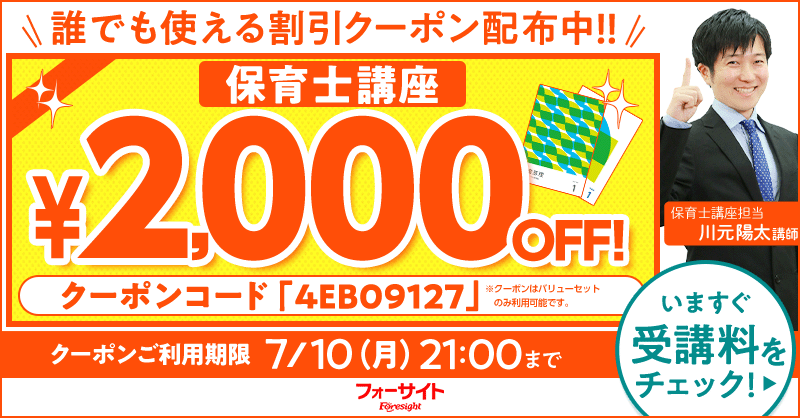 【期間限定】保育士講座 誰でも使えるクーポン 配布中!