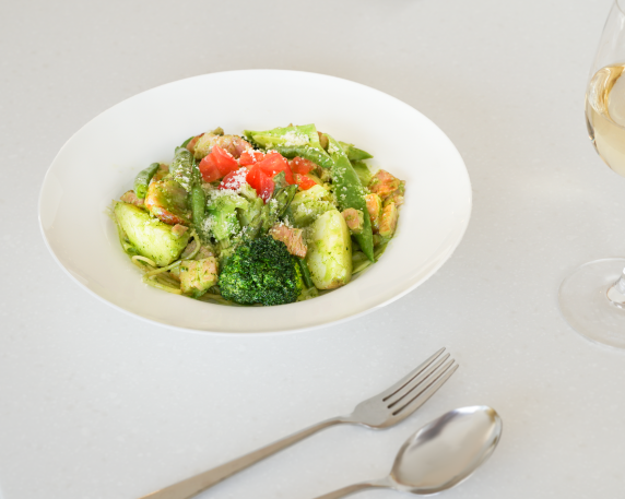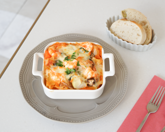 春の喜びを感じられる春野菜を使ったお食事メニューも2品登場。ベーコンと旬の野菜がゴロっと入ったパスタ「ベーコンと野菜のジェノベーゼ」は、アスパラ・キャベツ・ジャガイモなど春の野菜とパスタを、自家製ジェノベーゼソースと生クリームで仕上げました。クリーミーなジェノベーゼソースと、旬の野菜のハーモニーが口の中で広がります。ぷりっぷりのエビが入った、「エビとリガトーニのトマトクリームグラタン」は、リガトーニとエビ、野菜、マッシュルームをトマトクリームであえて、チーズで熱々に焼き上げたパスタグラタン。ランチやディナーにぜひお楽しみください。