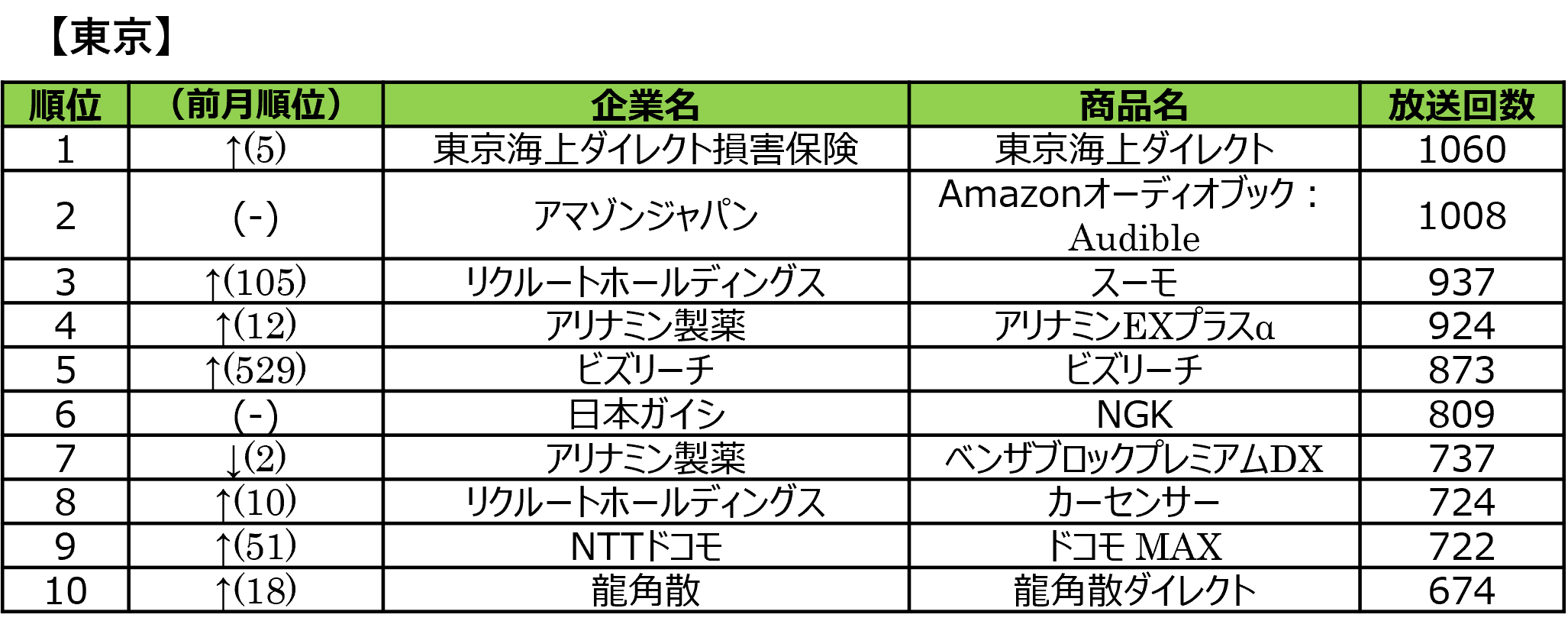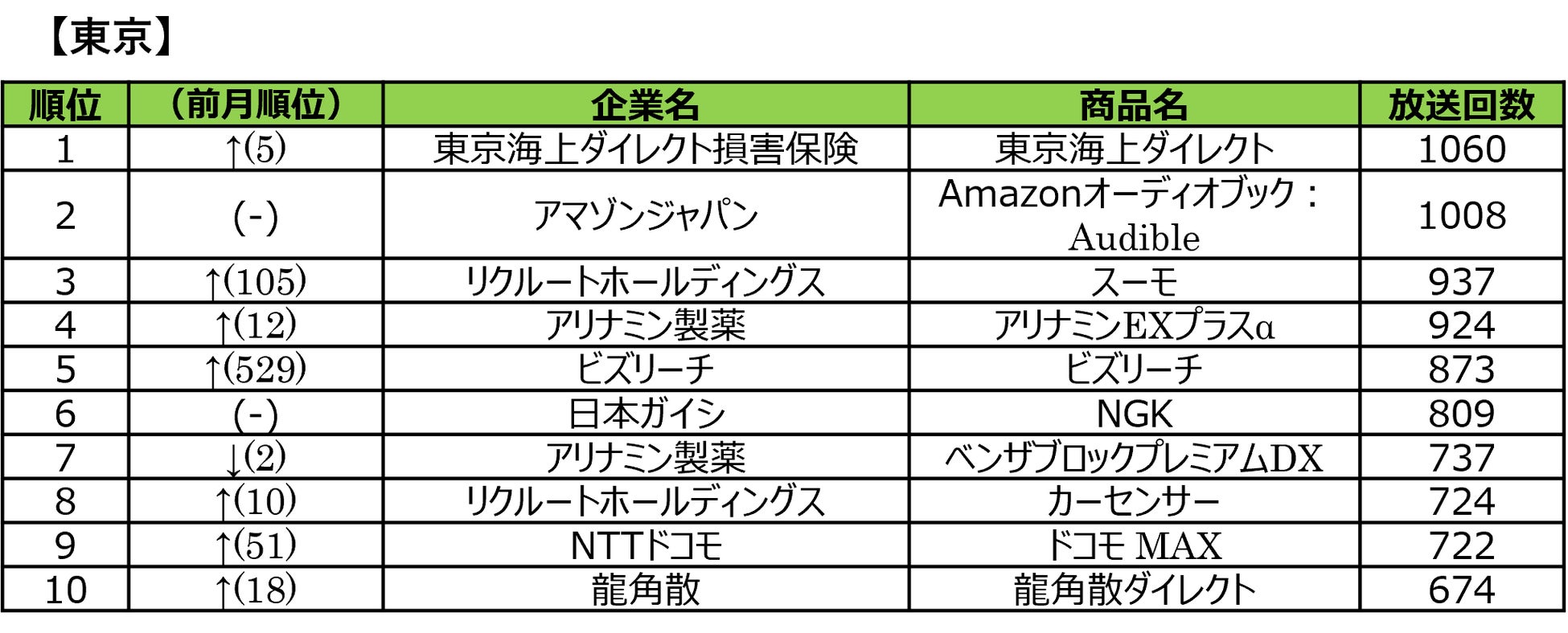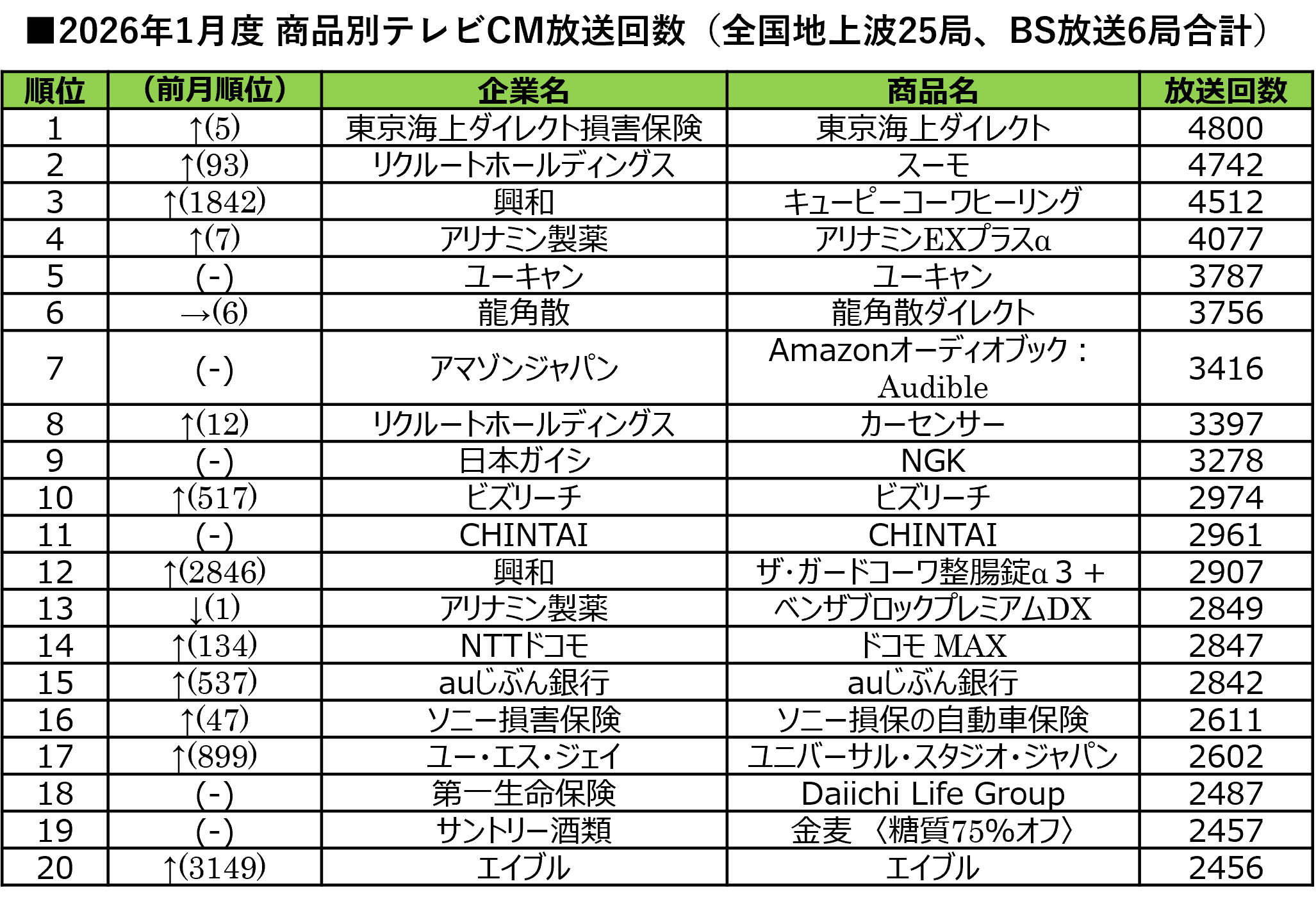 ■2026年1月度 商品別テレビCM放送回数ランキング