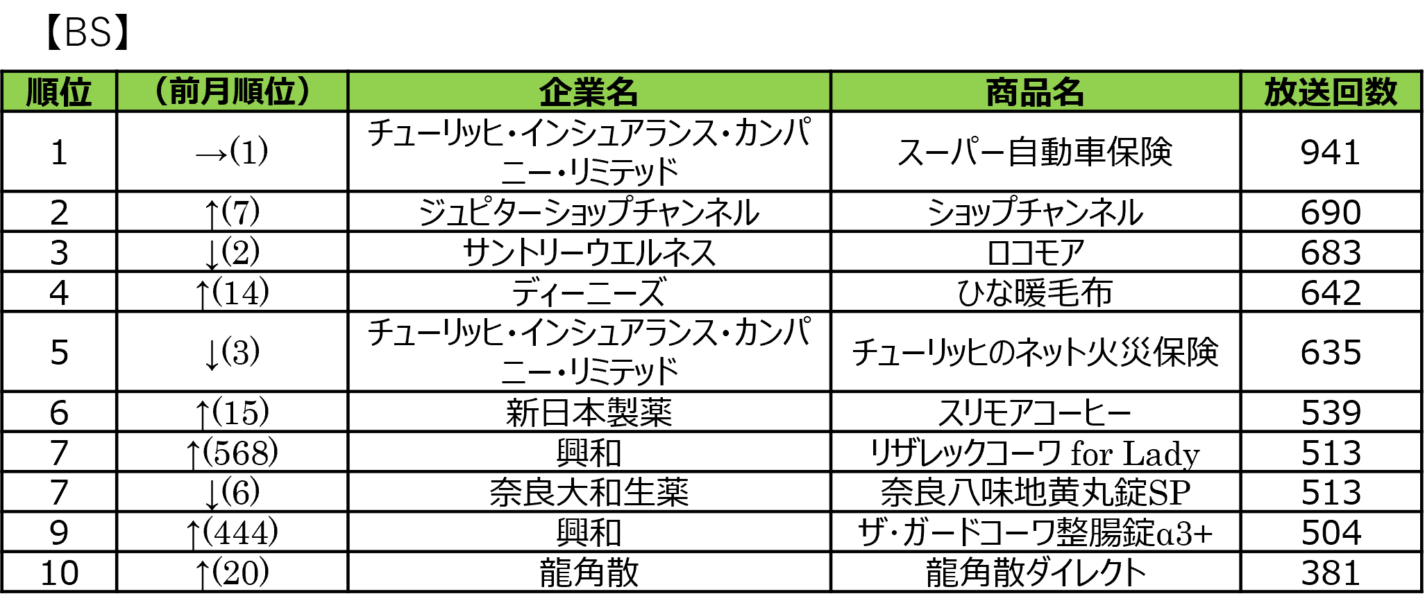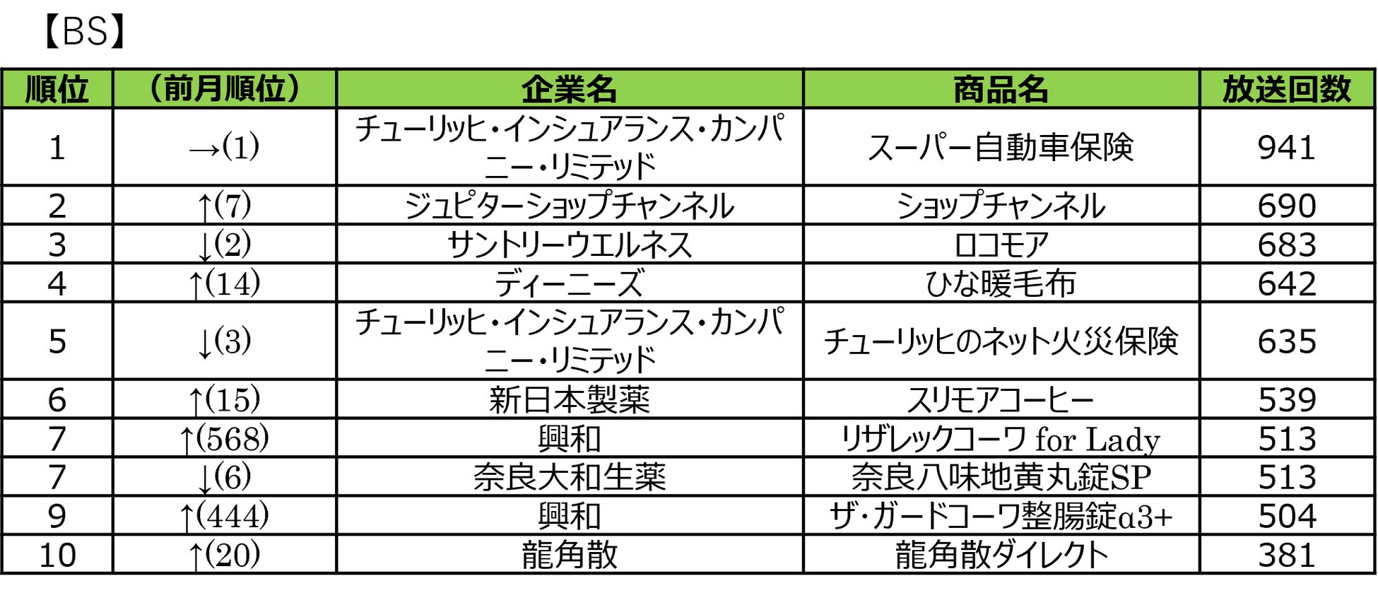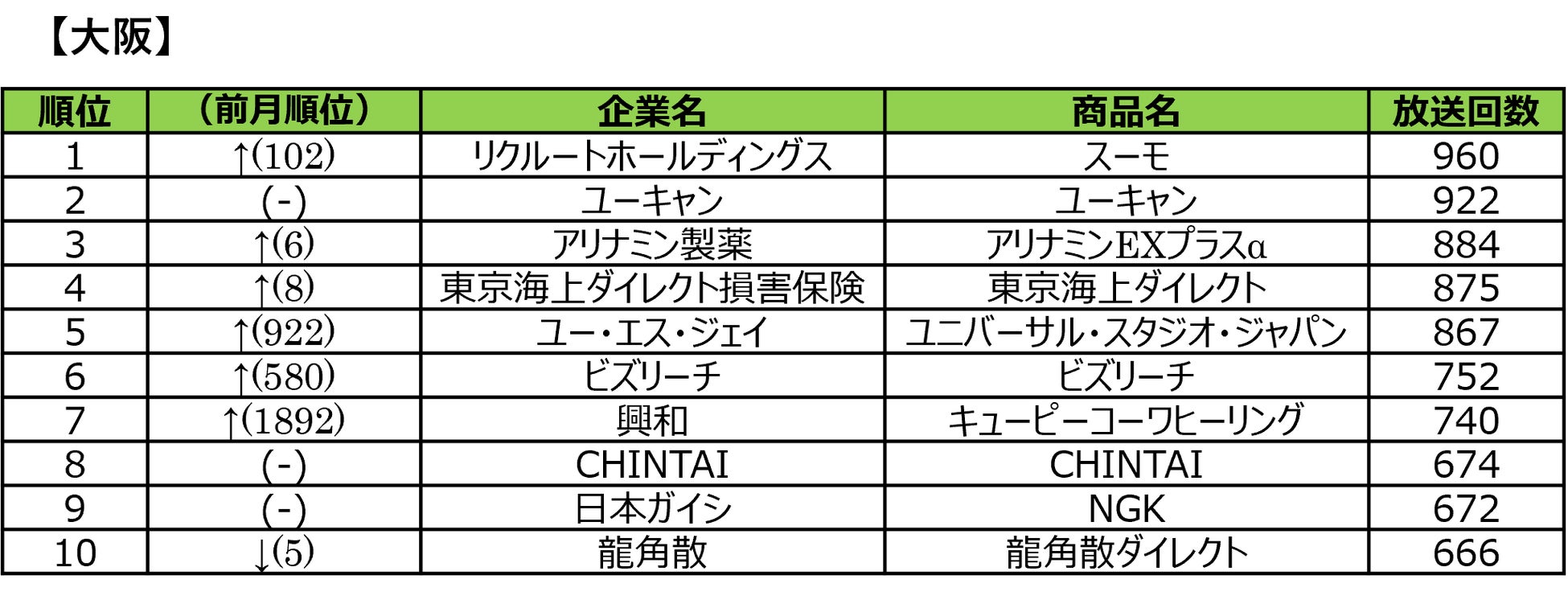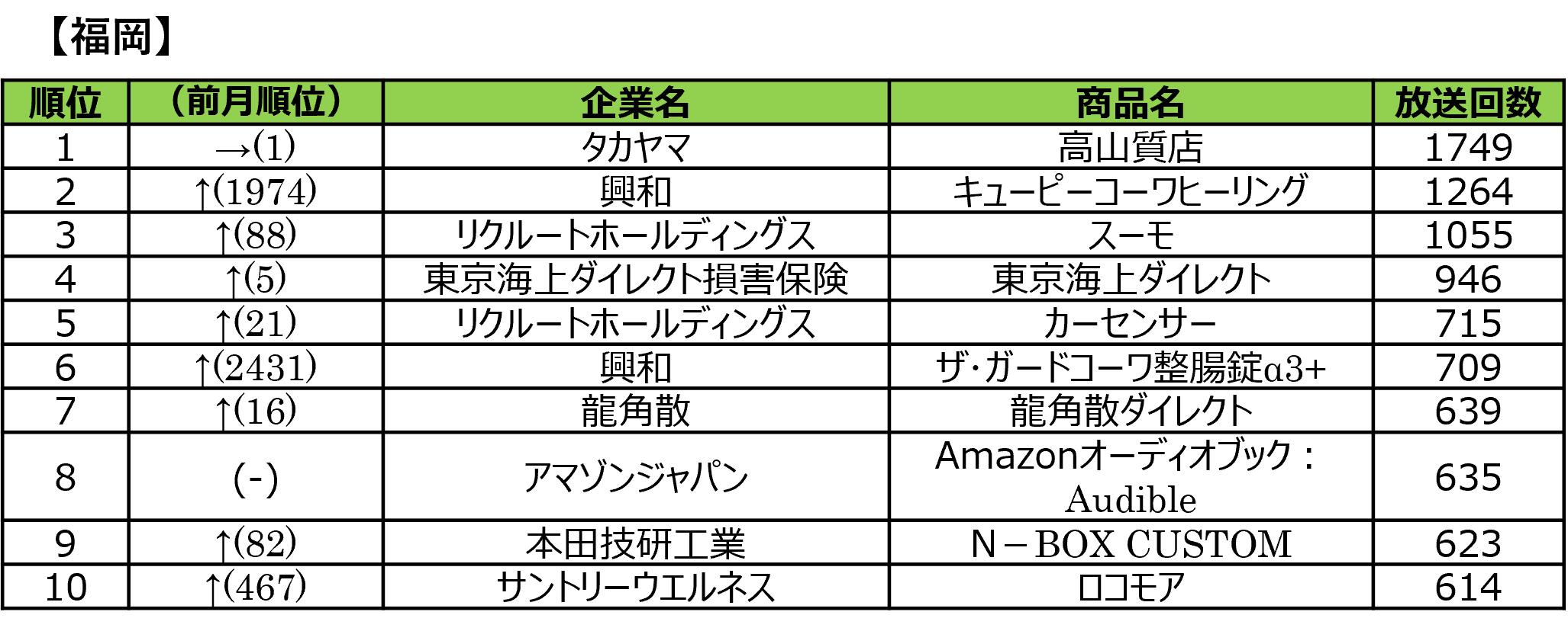 ■2026年1月度 商品別テレビCM放送回数ランキング