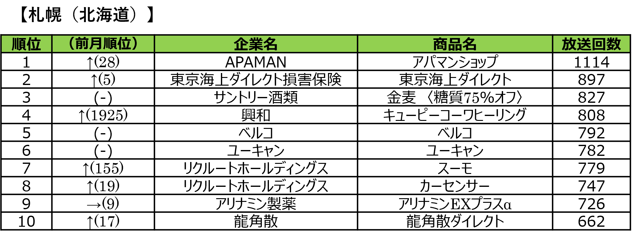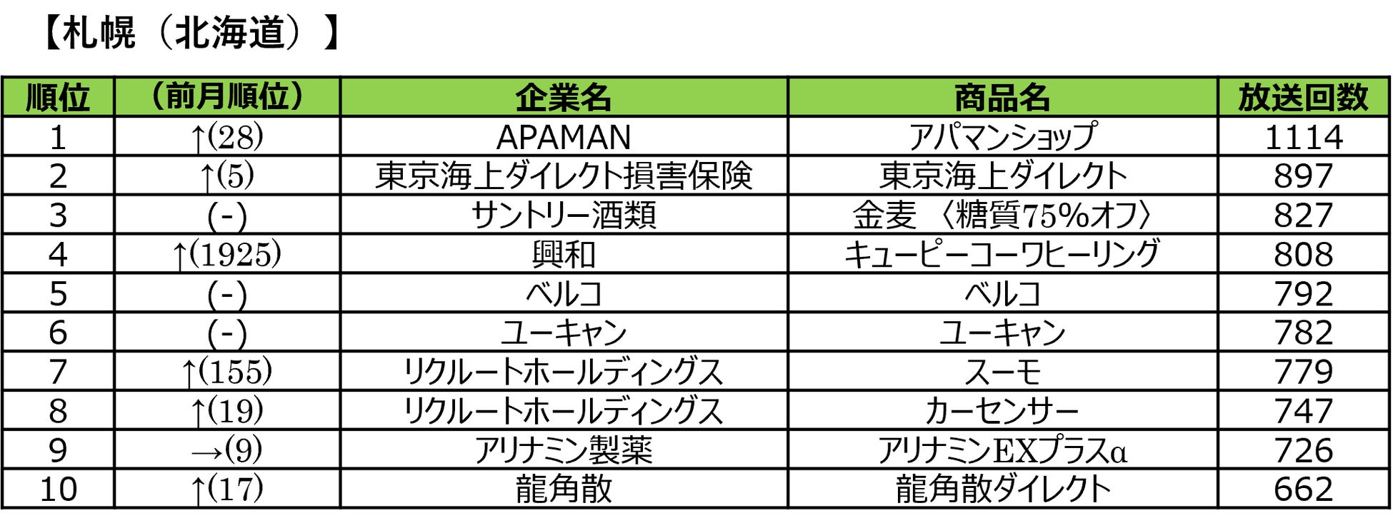 2026年1月のエリア別ランキングは、全体的に商品別ランキングと似た傾向ですが、福岡地区ではタカヤマ「高山質店」が圧倒的な出稿力を見せました。また、札幌地区では、全国ランキングで20位だったAPAMAN「アパマンショップ」が1位に躍進。 春の進学・就職を控えたこの時期、特に賃貸需要が急速に高まる北海道エリアにターゲットを絞り、エリア限定の集中プロモーションを行うことで、効率的に新規顧客との接点を創出しています。