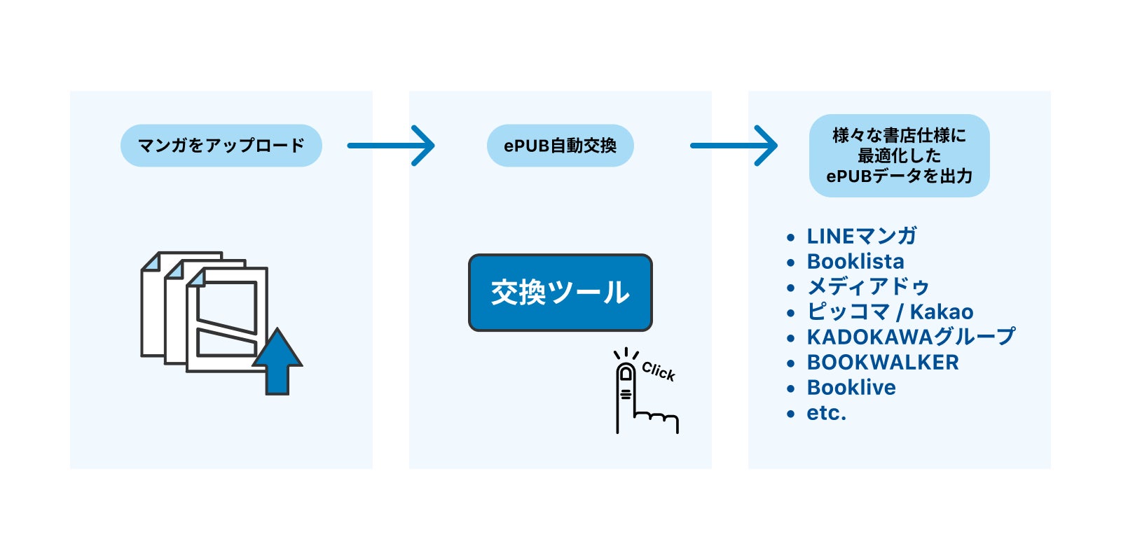 ・各電子書店の異なるePUBフォーマットにワンクリックで変換可能