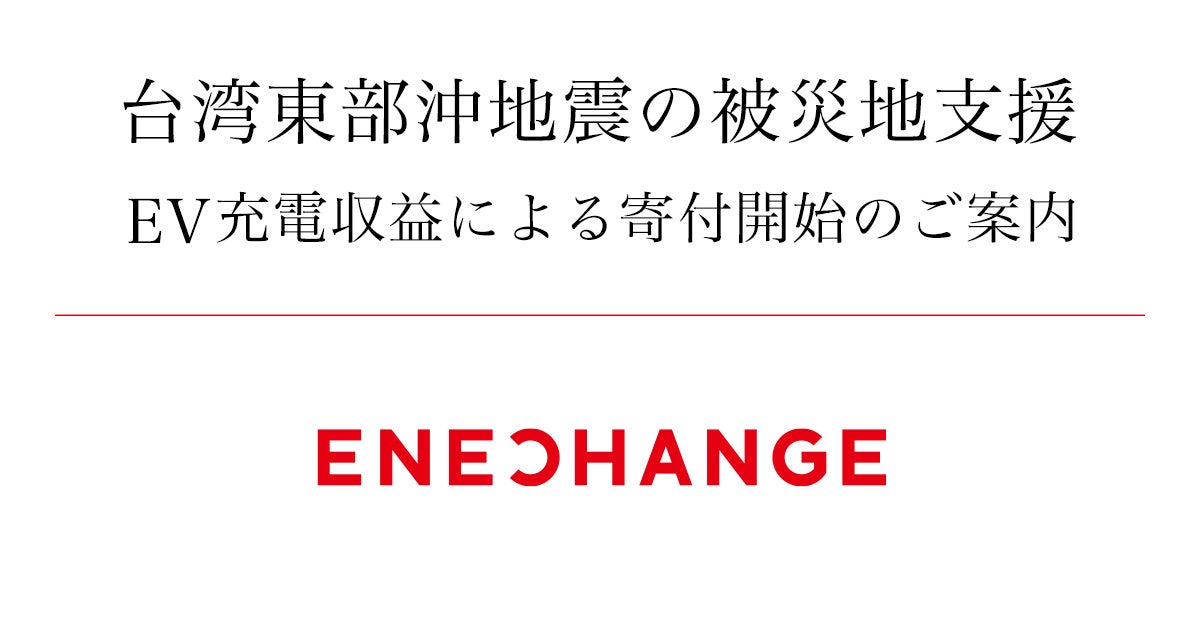 台湾東部沖地震の被災地への支援活動として、2024年4月9日(火)から5月31日(金)までの間、「EV充電エネチェンジ」の普通充電をご利用いただいた充電収益の一部を日本赤十字社が実施する「2024年台湾東部沖地震救援金」に寄付いたします。本取り組みが被災地の復旧・復興活動の一助となることを願っています。