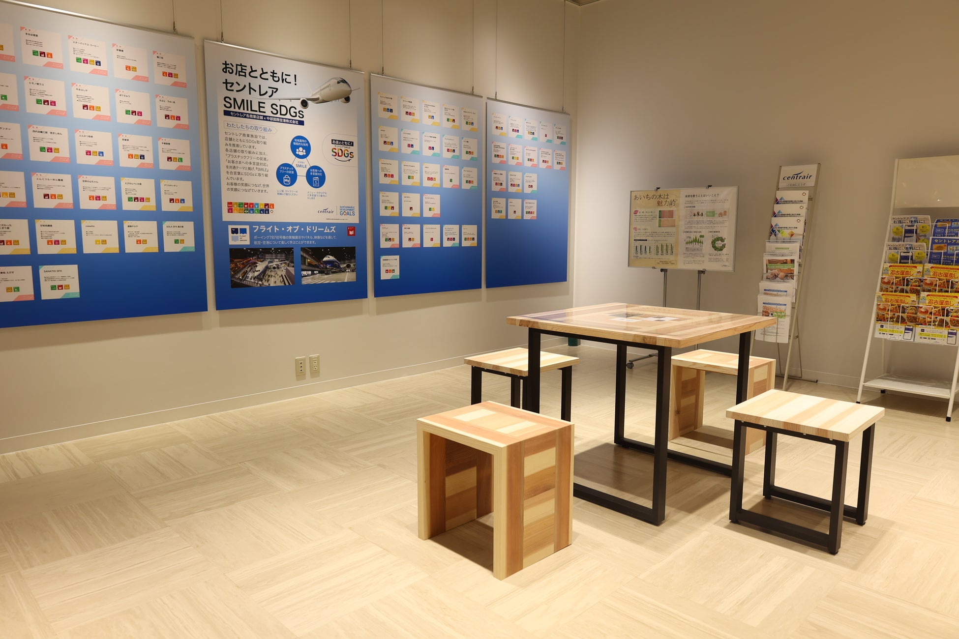 ・愛知県産の木材を使用したテーブルおよび椅子の設置(協力:株式会社杉生)
