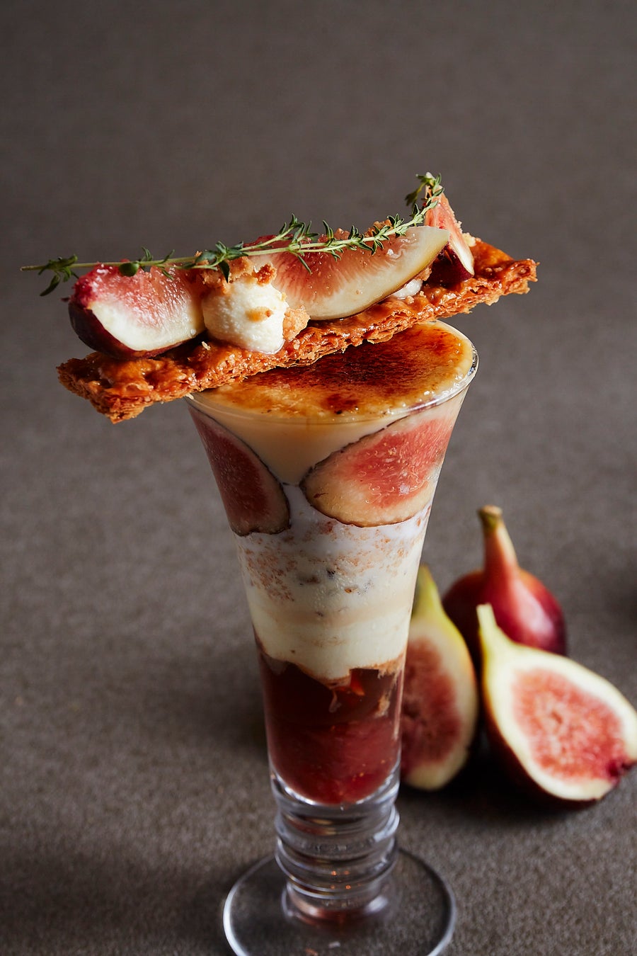 新鮮な無花果を贅沢に使用したこのパフェは、自然な甘みと赤ワインで煮込んだコンポートが絶妙にマッチします。トンカ豆クリームの豊かな香りと紅茶ジュレが味の複雑さを引き立て、焦がしバターアイスクリームが冷たくて心地よいアクセントを加えます。サクサクのローストクルミとパイ生地は、食感に楽しさを提供します。