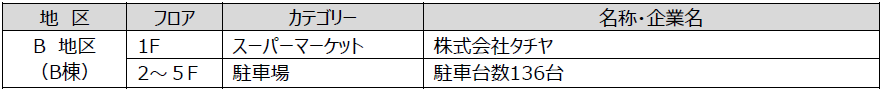 店舗・駐車場は、駐車台数136台が収納可能で、店舗部分はテナントとしてスーパーマーケットが入居を予定