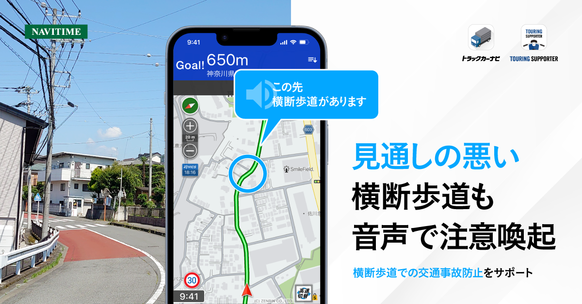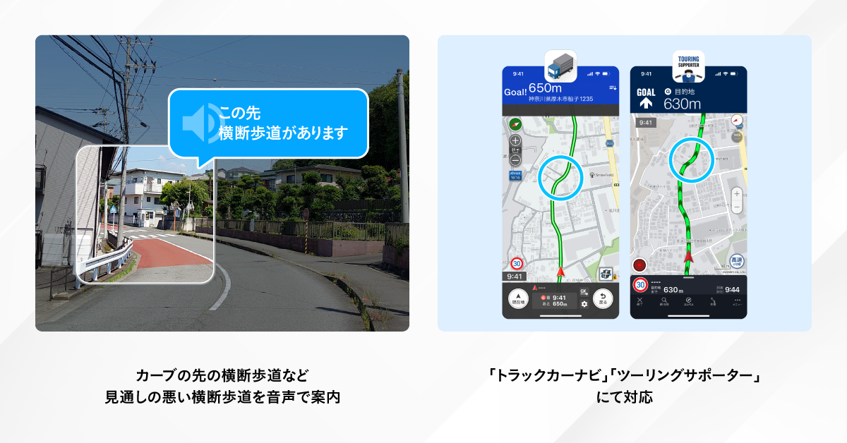 『トラックカーナビ』『ツーリングサポーター』、見通しの悪い横断歩道での注意喚起機能を提供開始