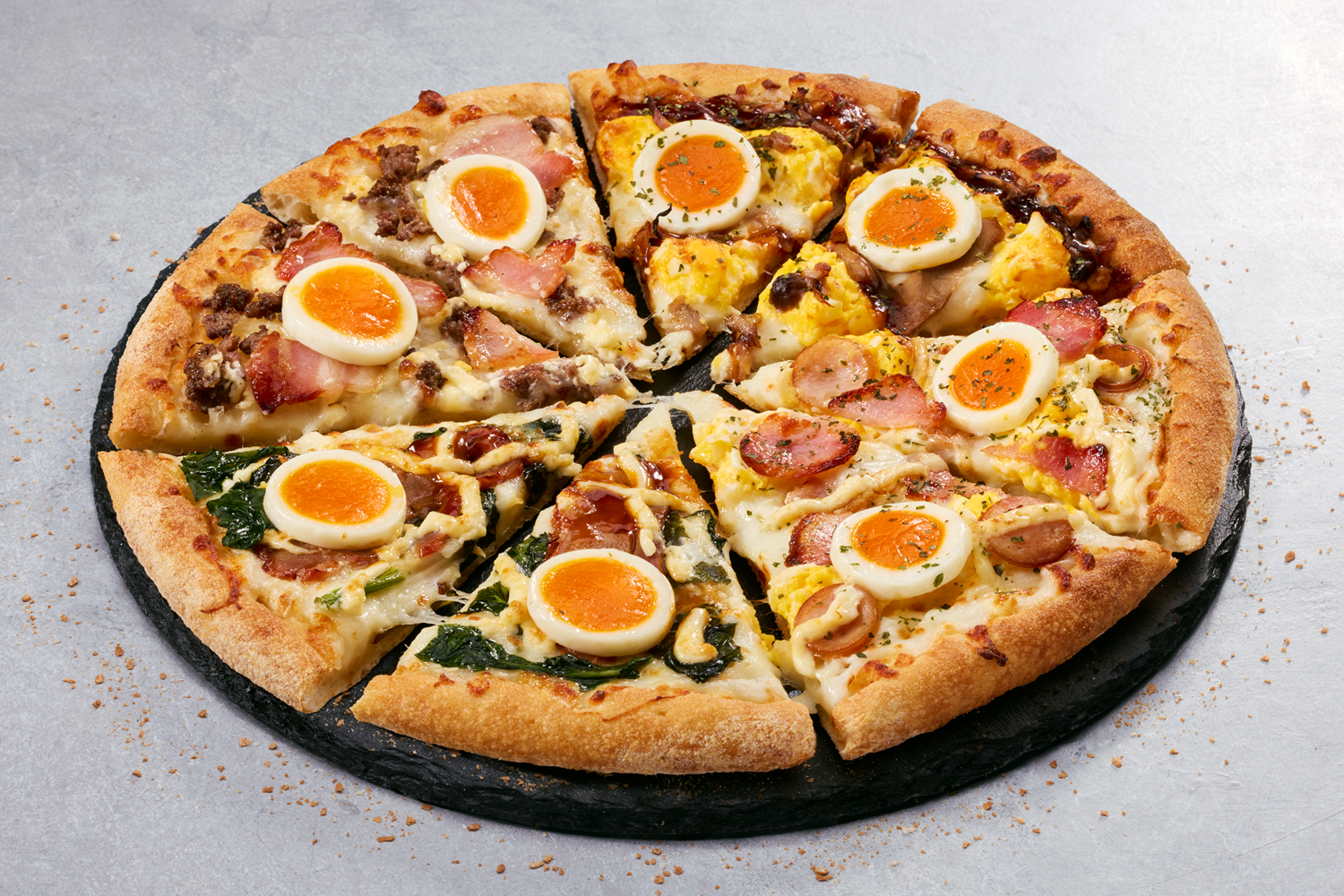 内容:①月見バーガーピザ ②クリーミーたまご&4種のきのこ