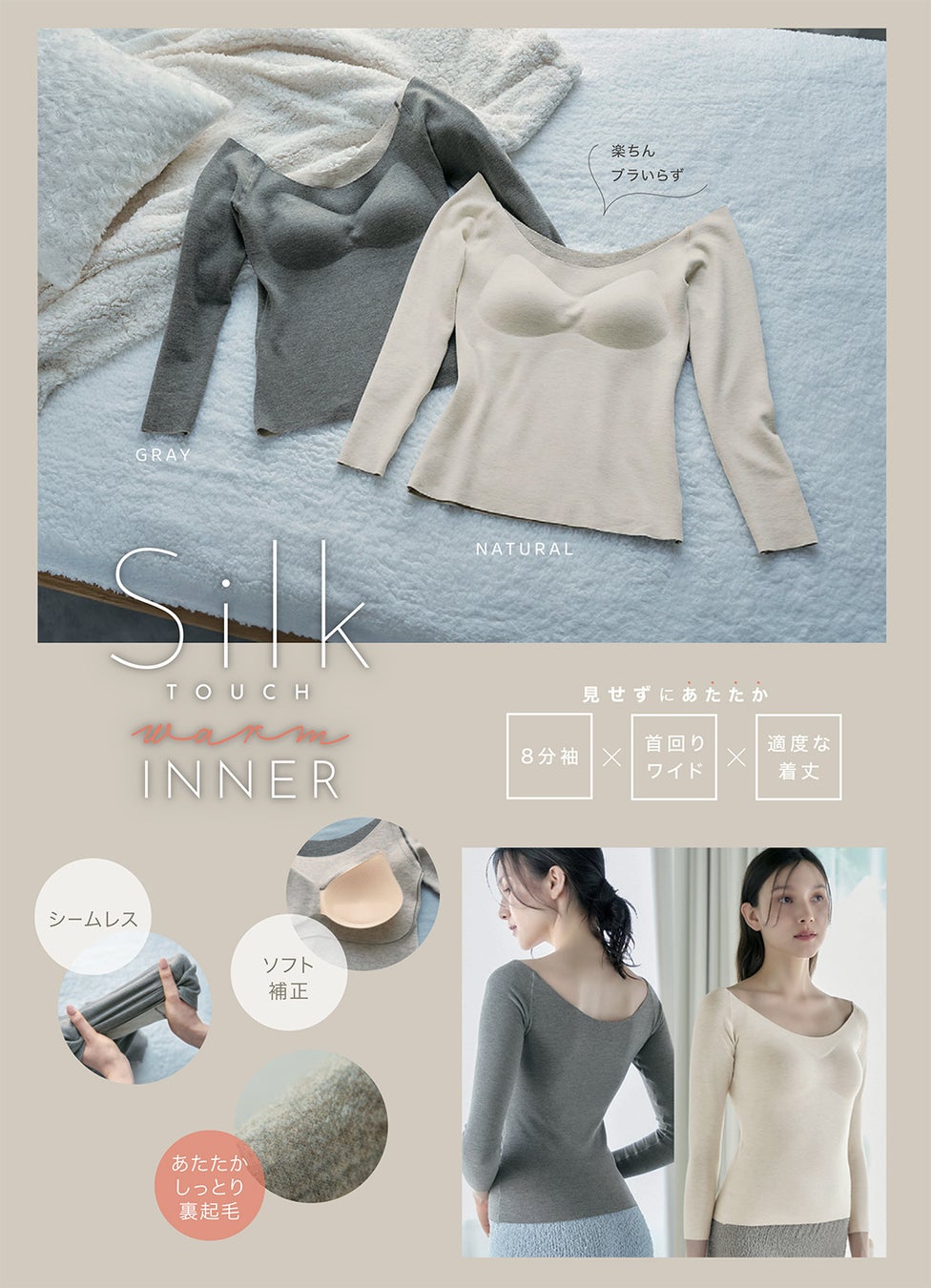 シルクタッチ ウォームインナー GRAY/NATURAL