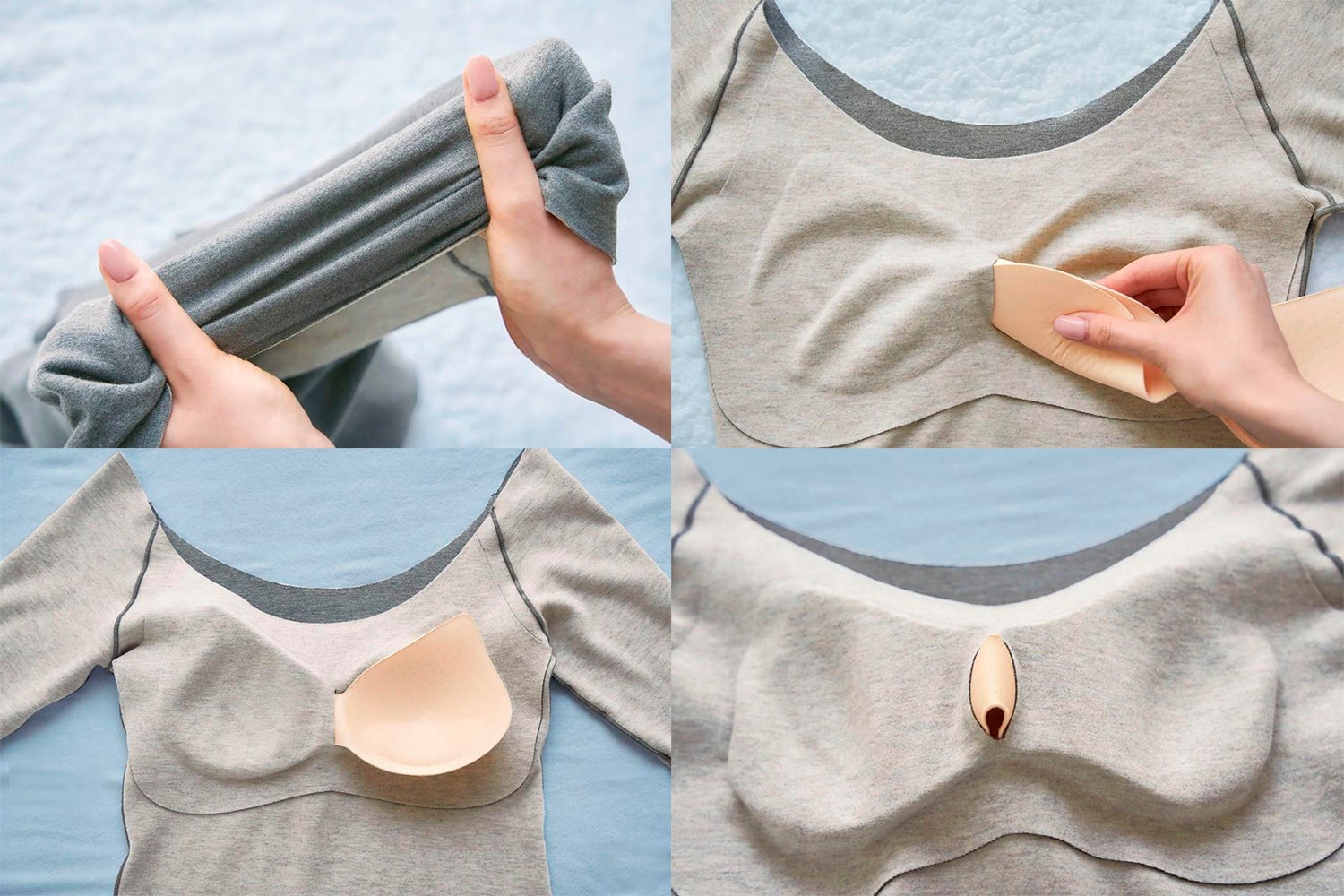 胸元部分は二重構造でしっかりフィット! 取外しできるパッド付が嬉しい。
